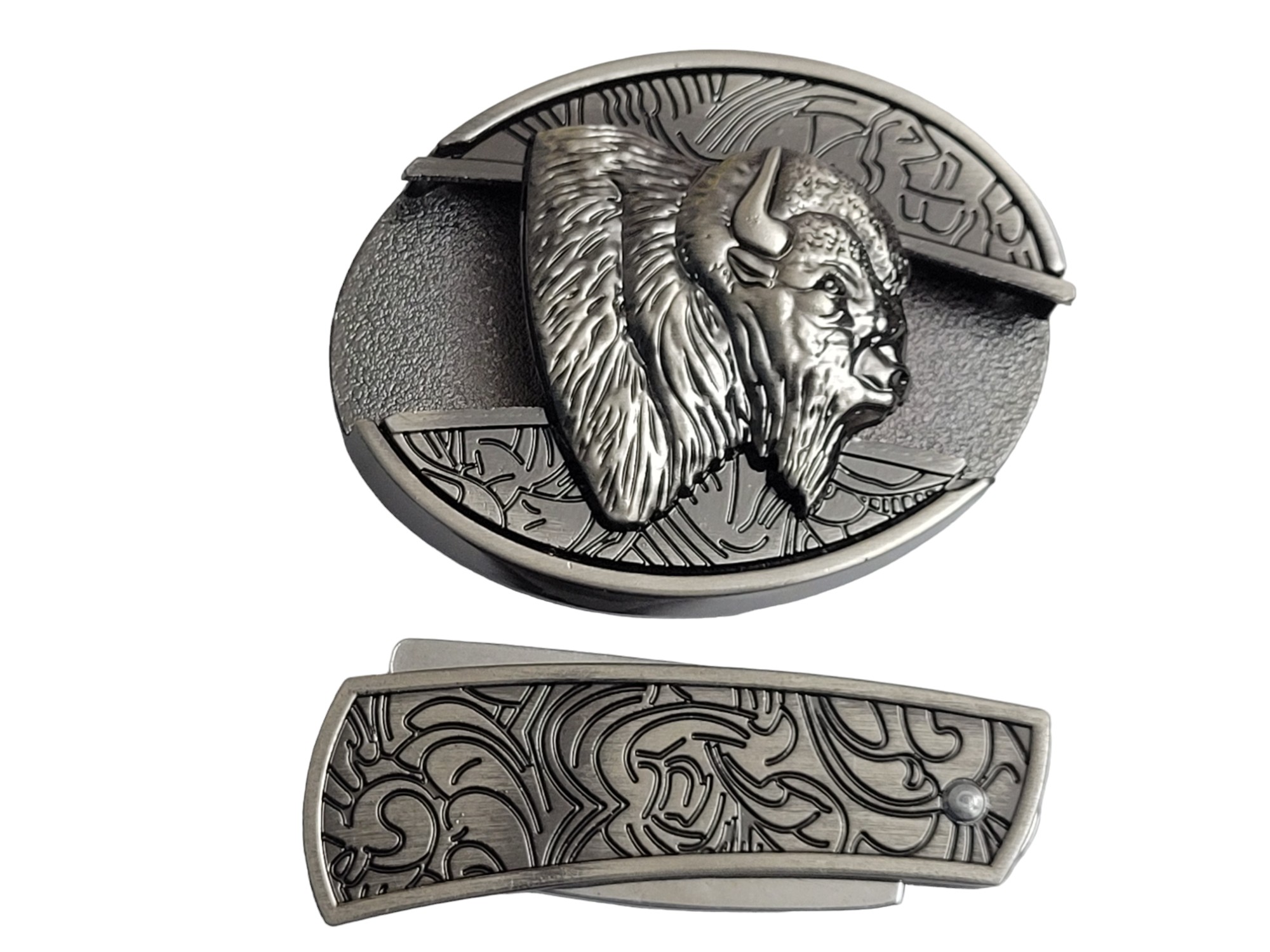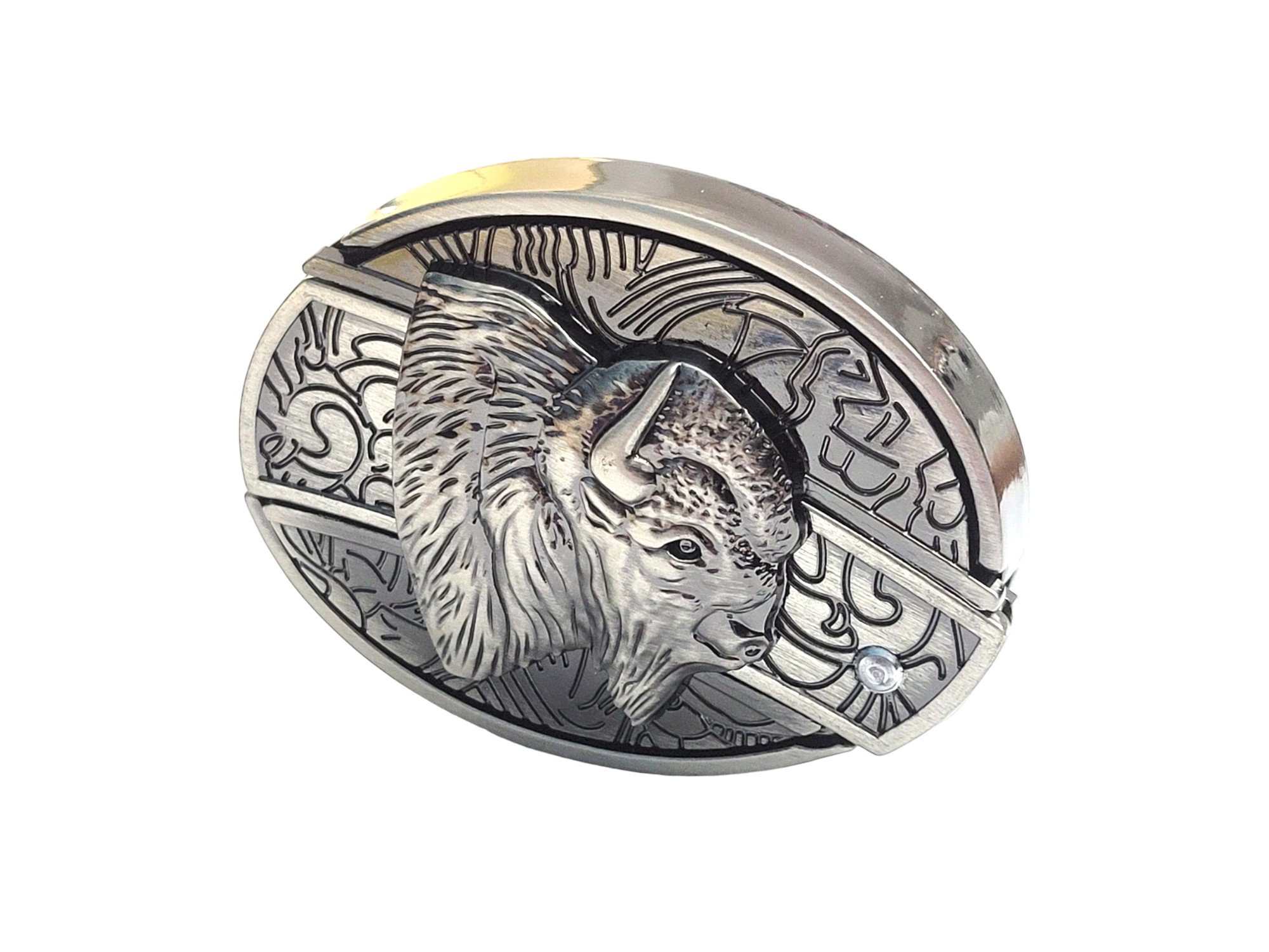 Introducing the 3D Bison Head Folding Knife Belt Buckle, a stylish accessory with a practical folding knife, perfect for outdoor activities. Enjoy free laser engraving for personalization!