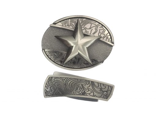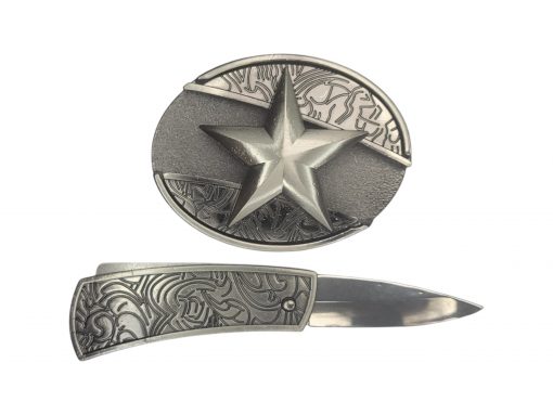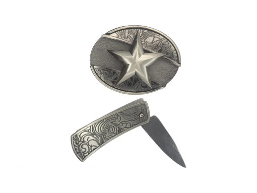Introducing our Folding Knife Belt Buckle, showcasing a striking 3D Lone Star design in a vintage silver finish. This eye-catching buckle is the perfect fusion of fashion and practicality, featuring a handy folding knife for those who appreciate innovative accessories. Plus, enjoy 🎉 free laser engraving 🎉 on the knife for a personal touch!