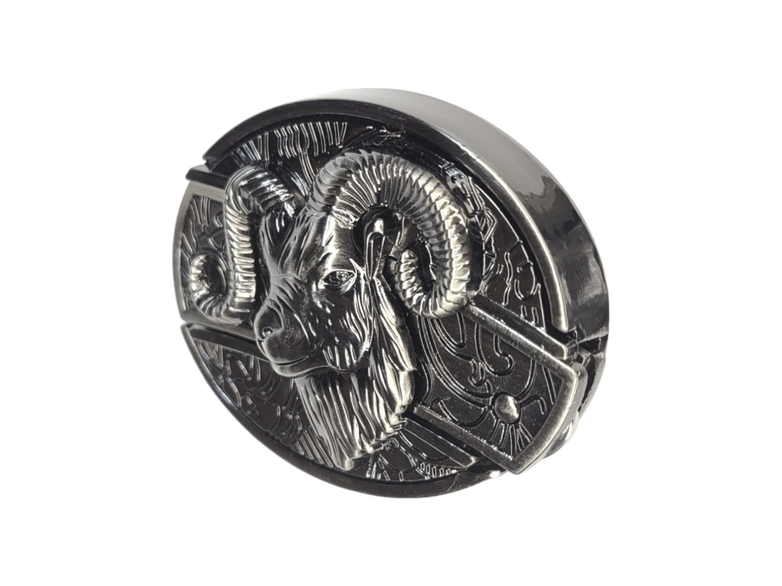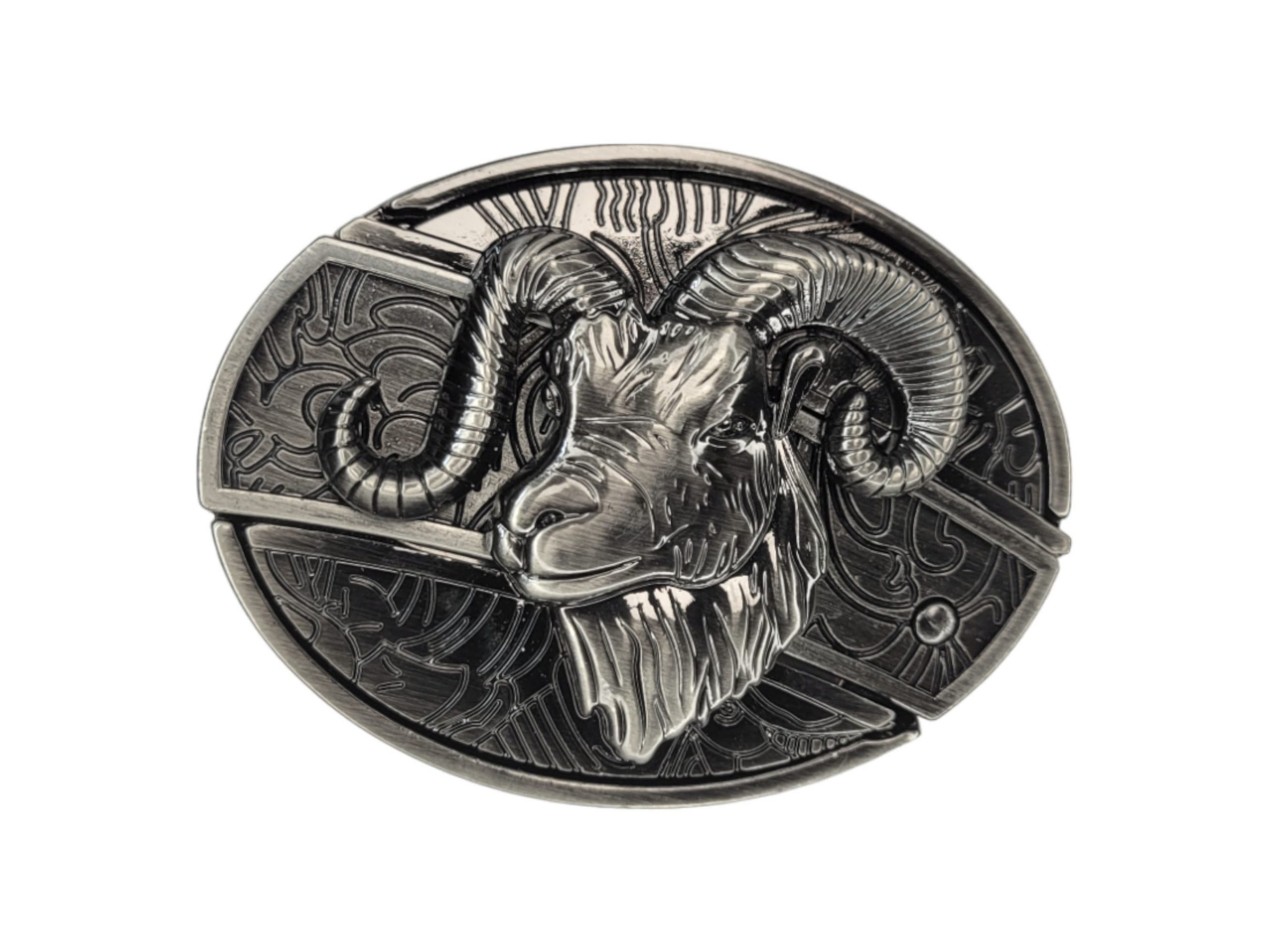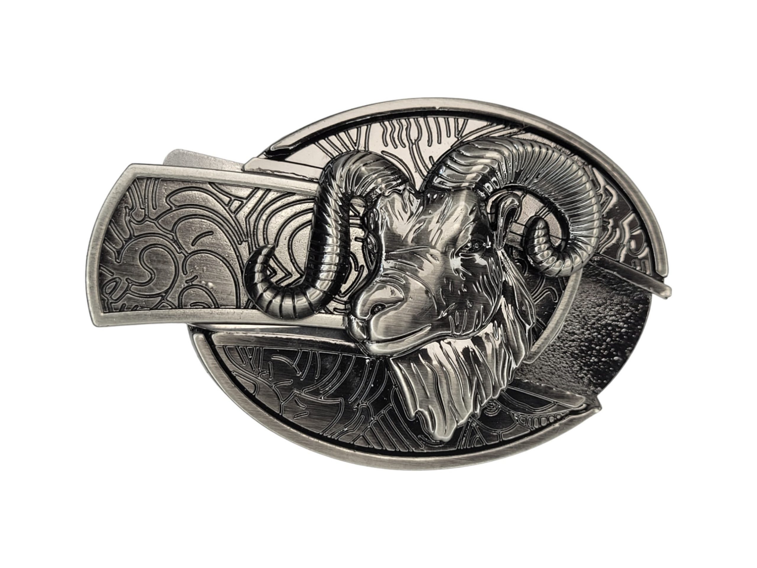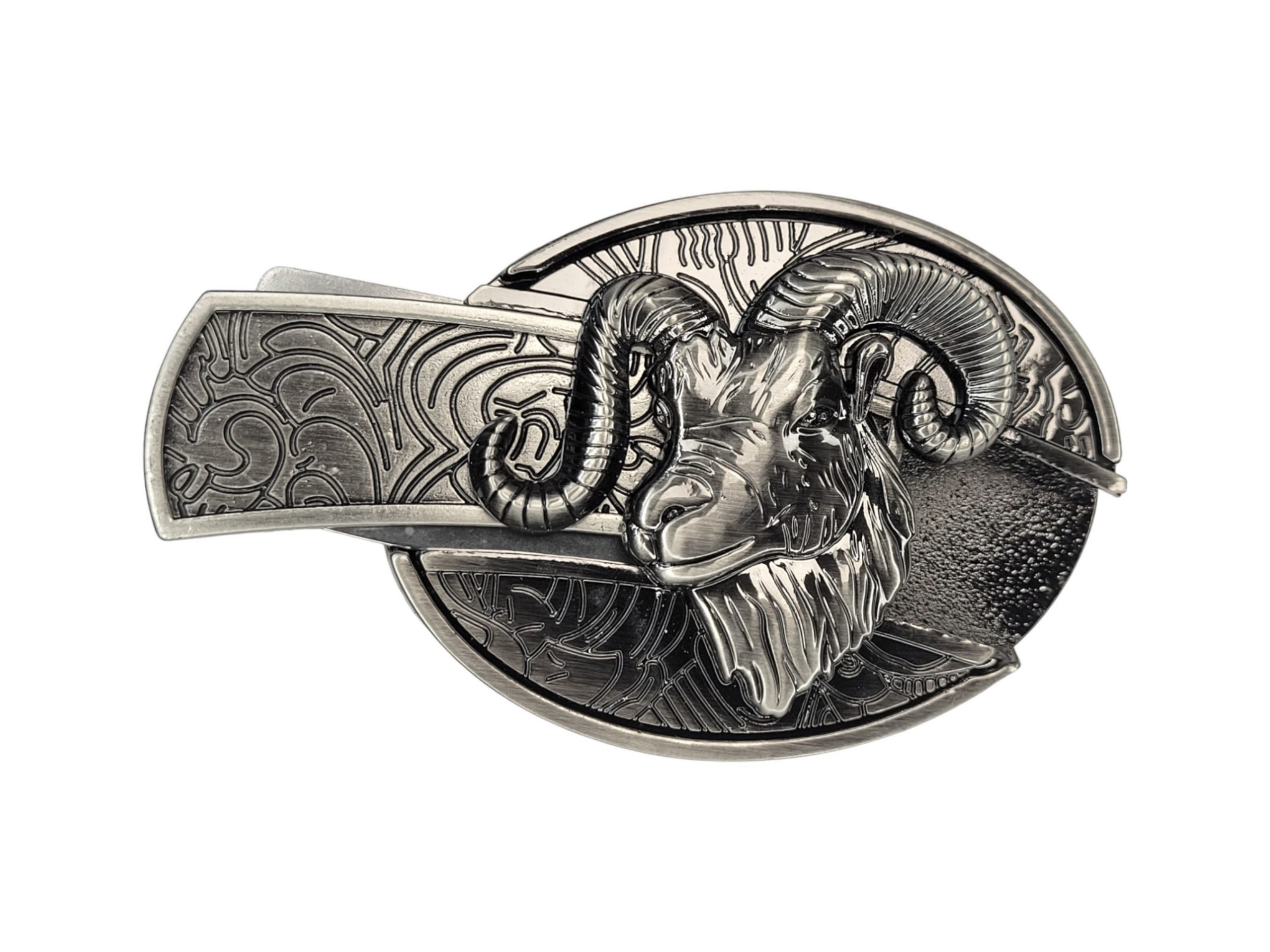 Introducing the 3D Ram Head Folding Knife Belt Buckle, combining style and utility. This buckle includes a small folding knife for outdoor convenience, and you can personalize it with free laser engraving.