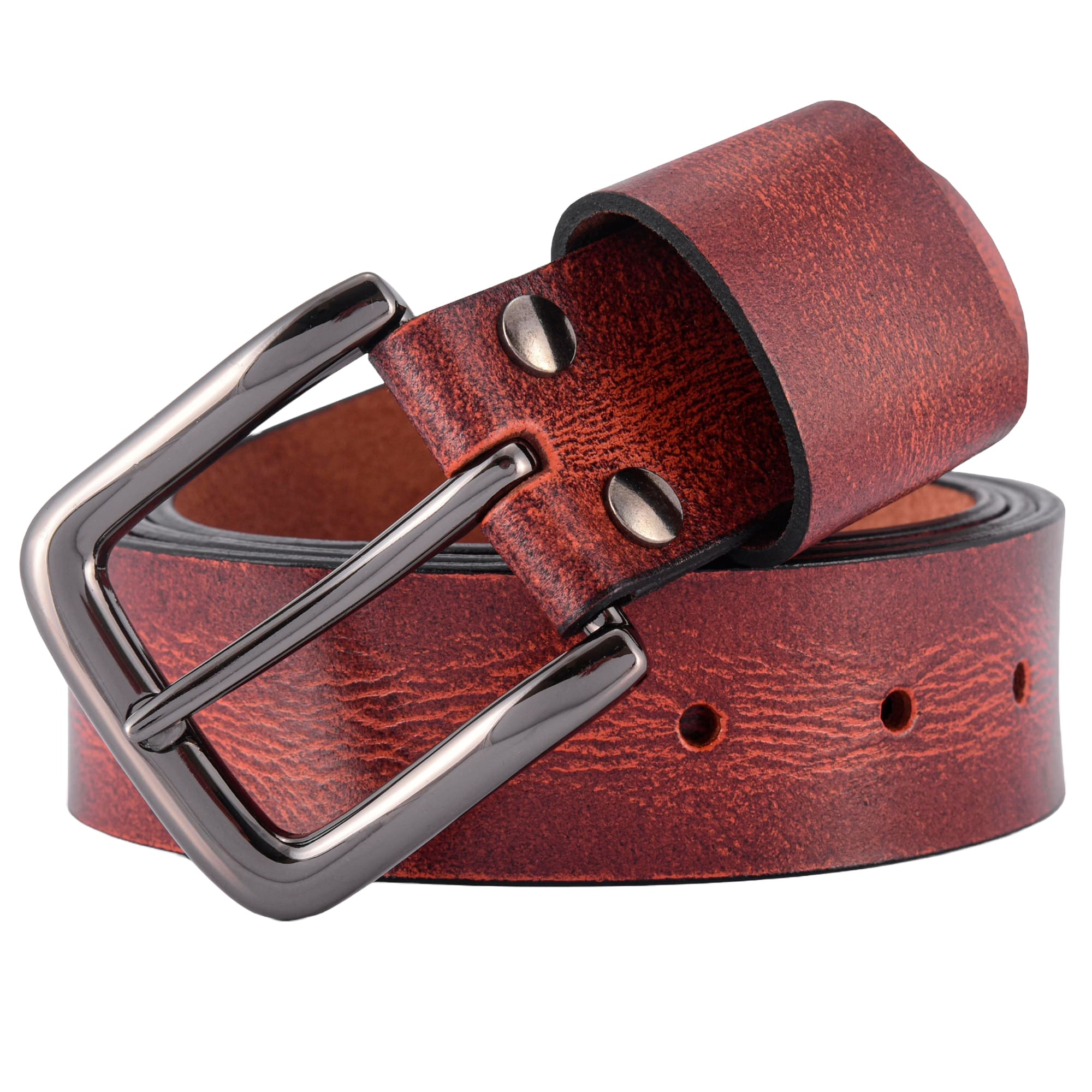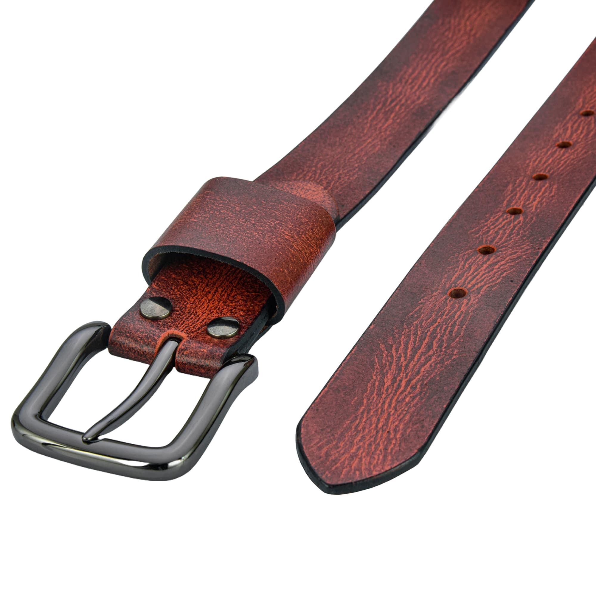 Antique Maroon Full-Grain Buffalo Leather Belt