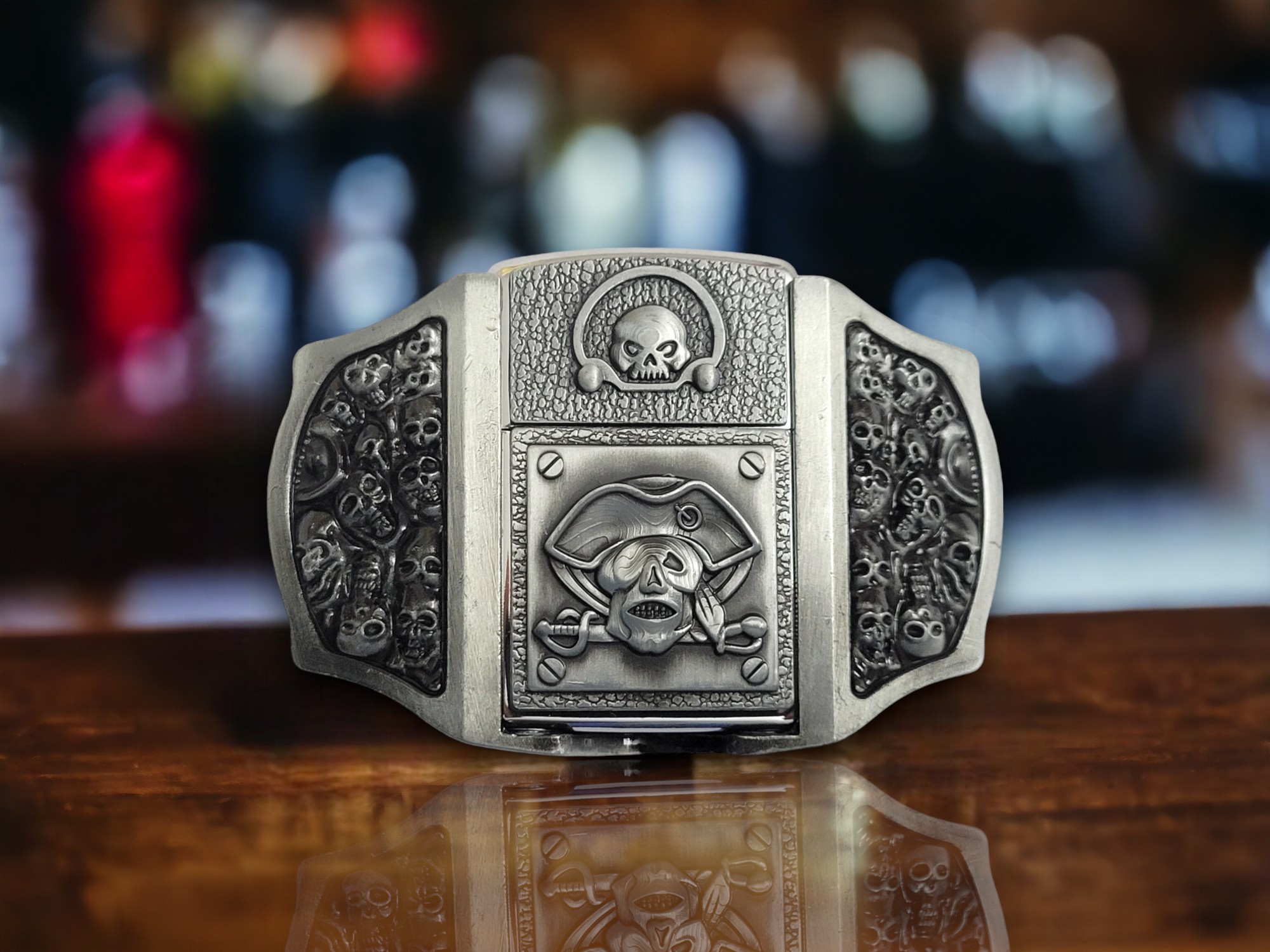 - Distinct Design – Showcasing pirate skulls in a bold antique silver finish.