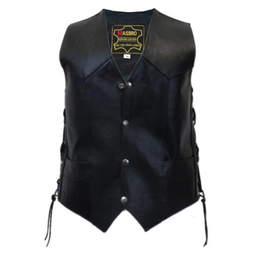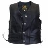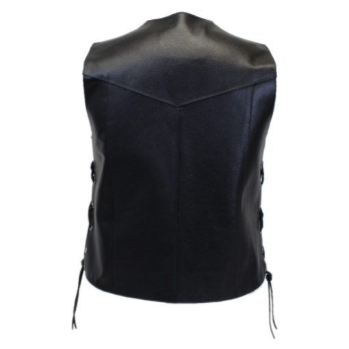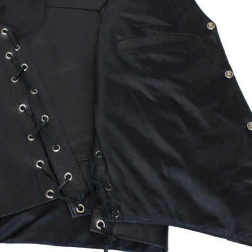 Mens Motorcycle Black Premium Genuine Leather Bikers Vest With Side Laces