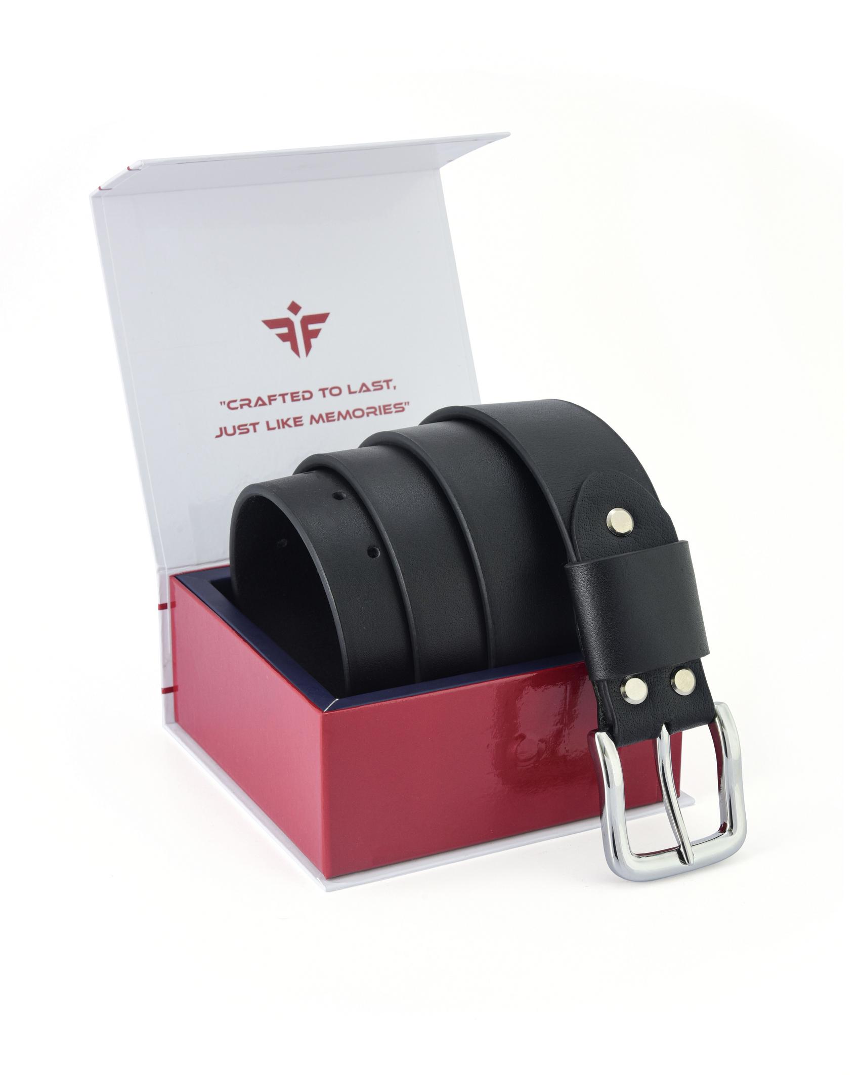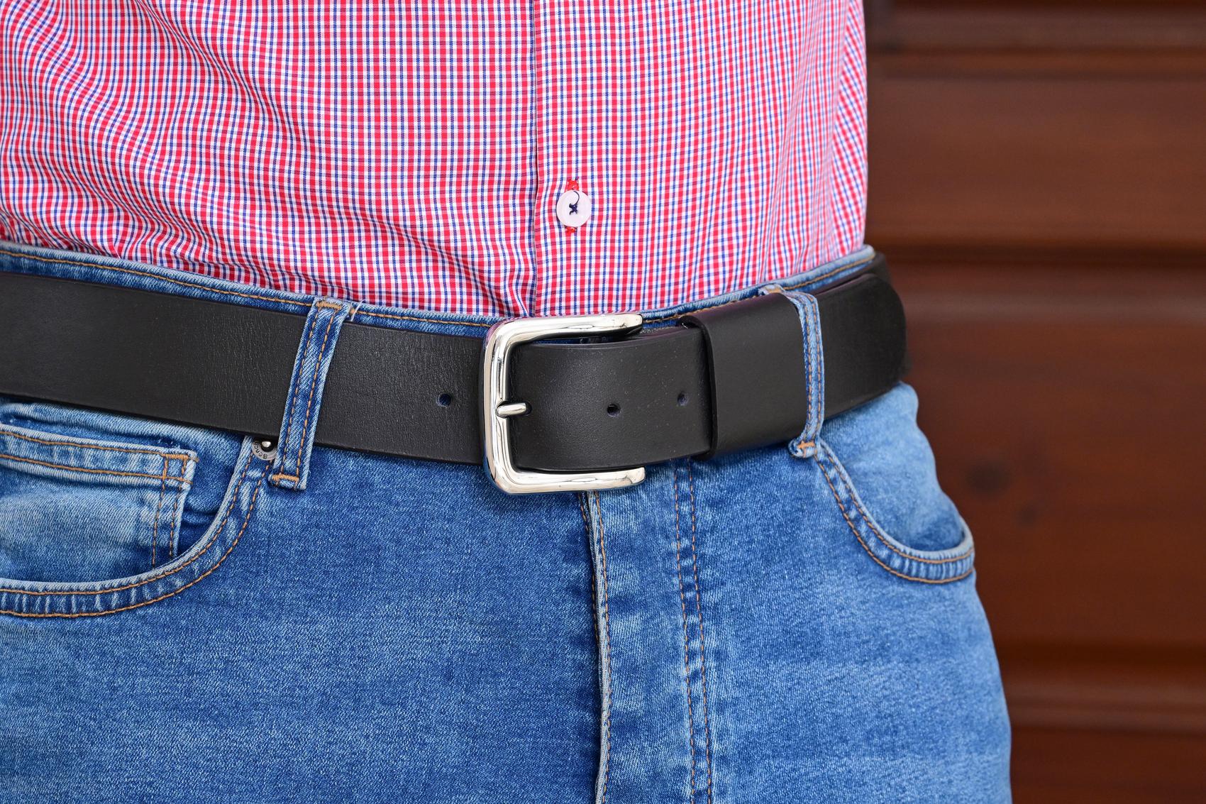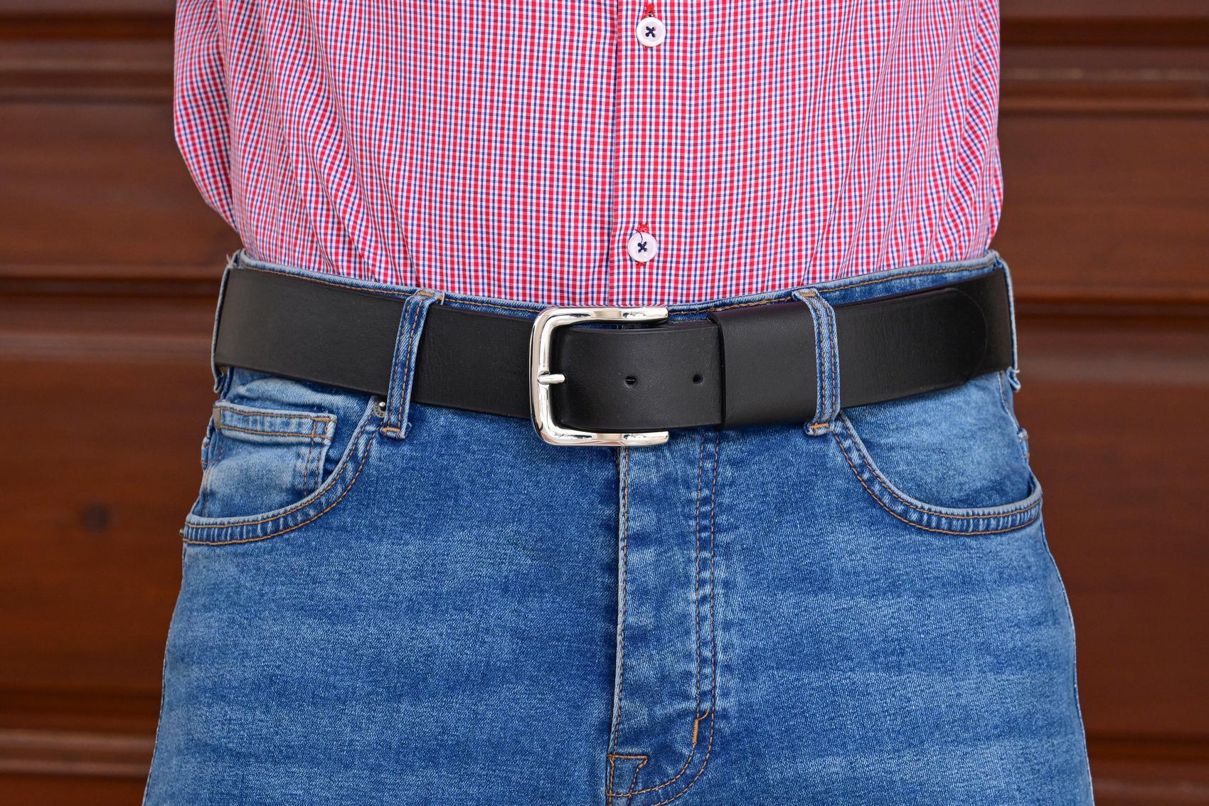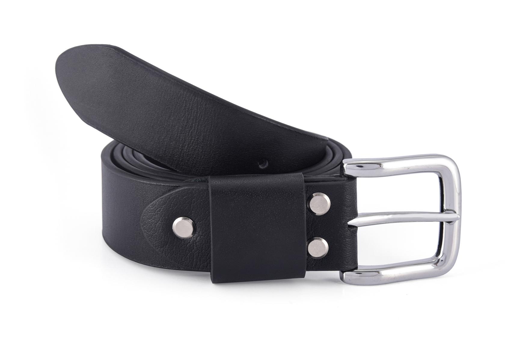 Black Finish Buffalo Leather Belt, Leather Belt with Chrome Buckle, Full Grain Leather Belt