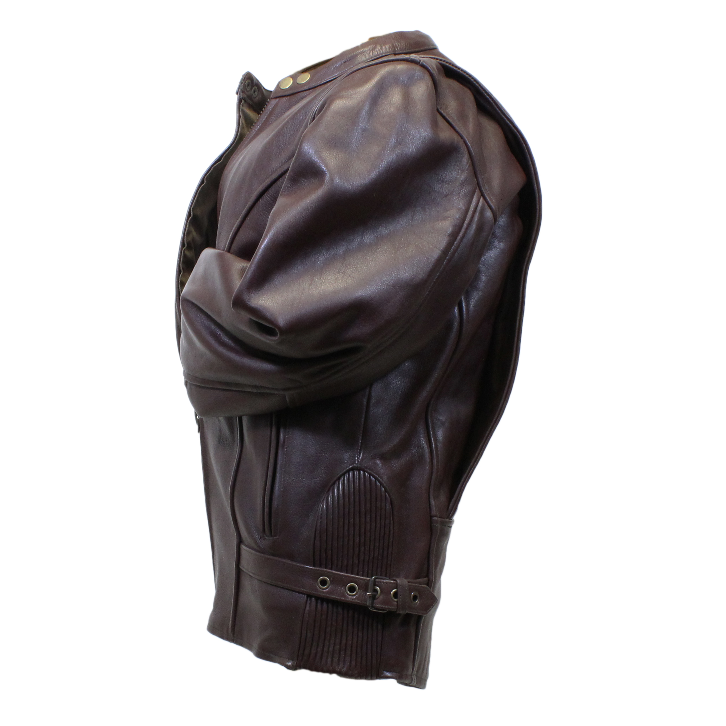 Men Motorcycle Racing Heavy Naked Cowhide 1.5mm Brown Genuine Leather Jacket