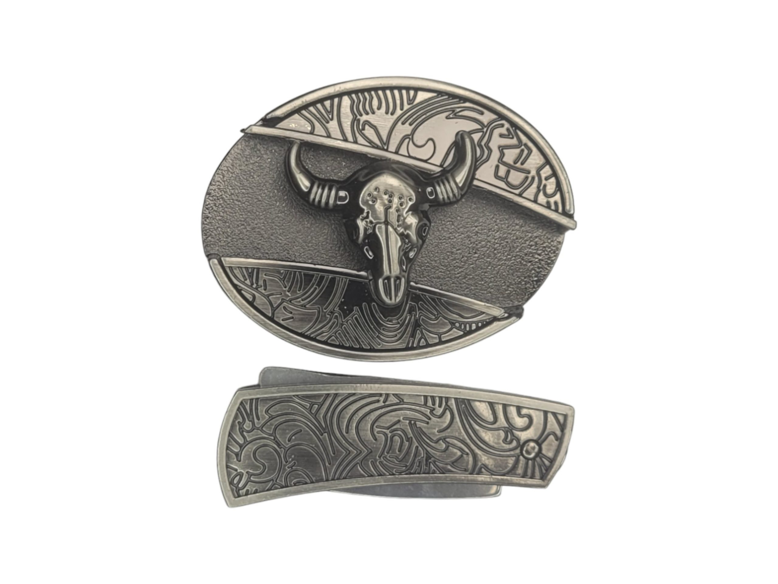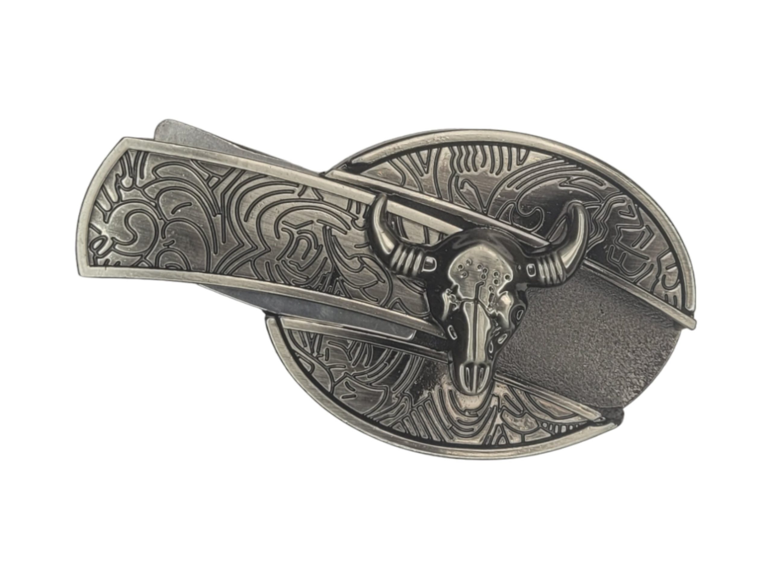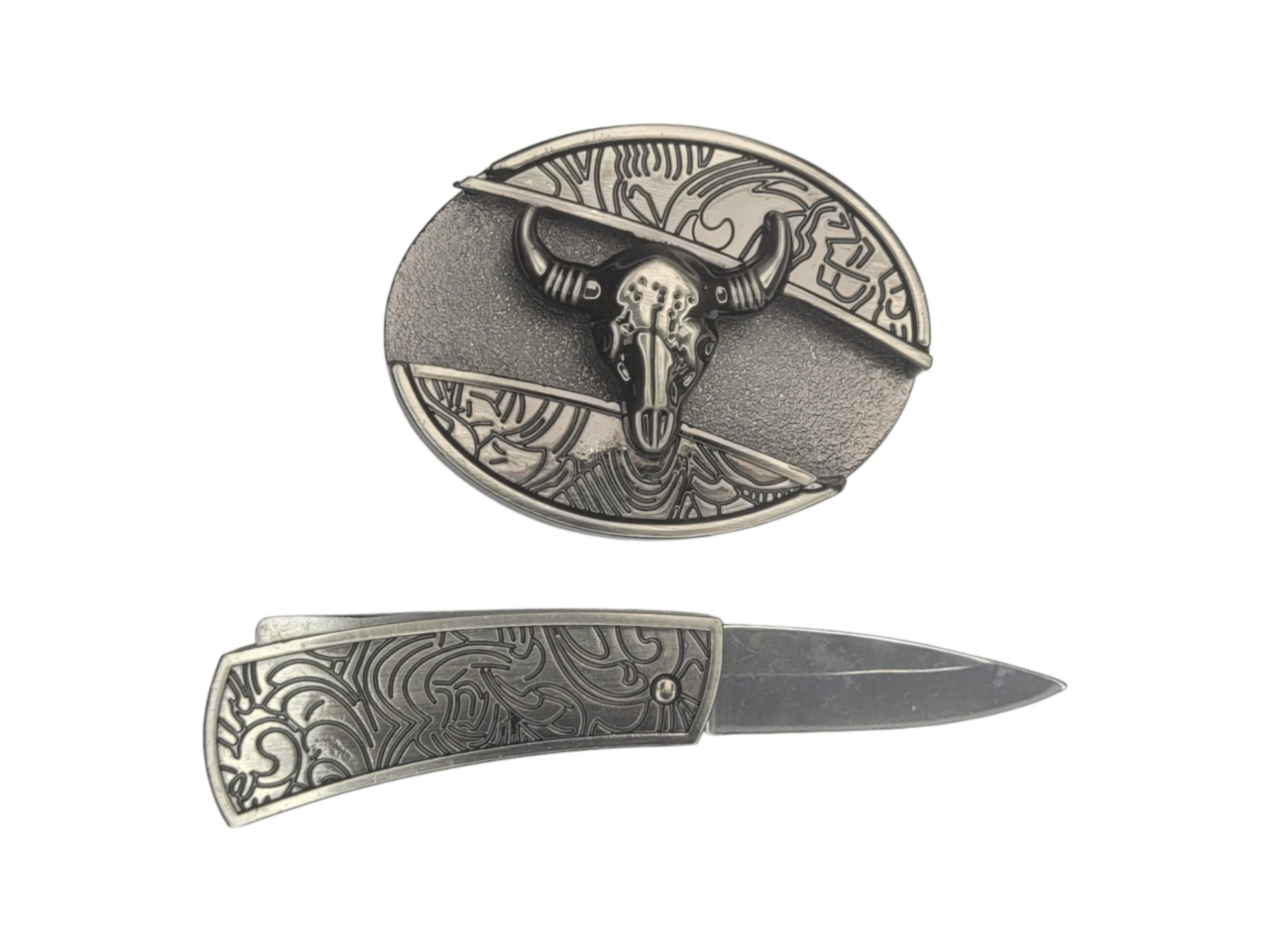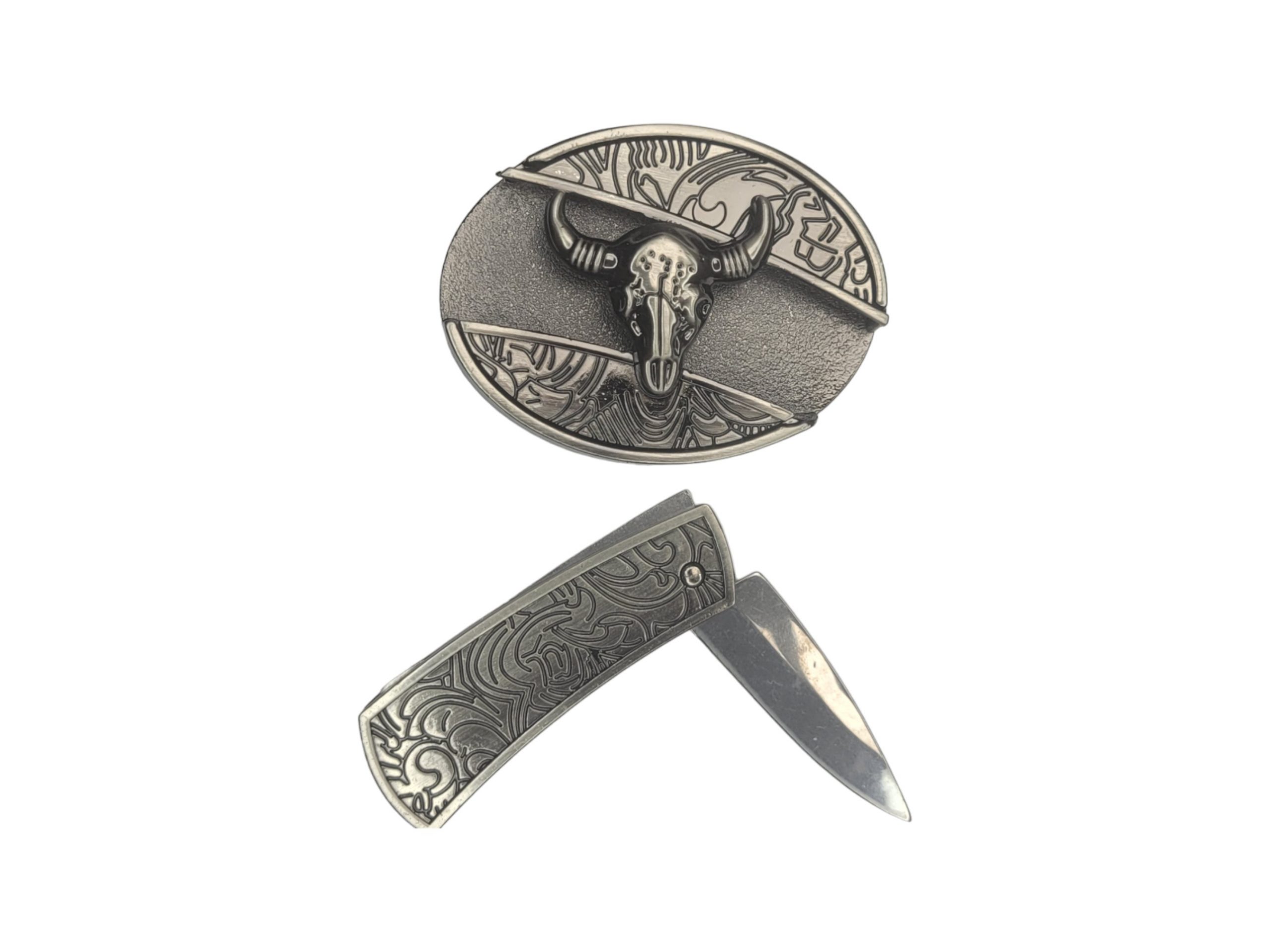 Cattle Skull Folding Knife Belt Buckle: Rugged & Functional