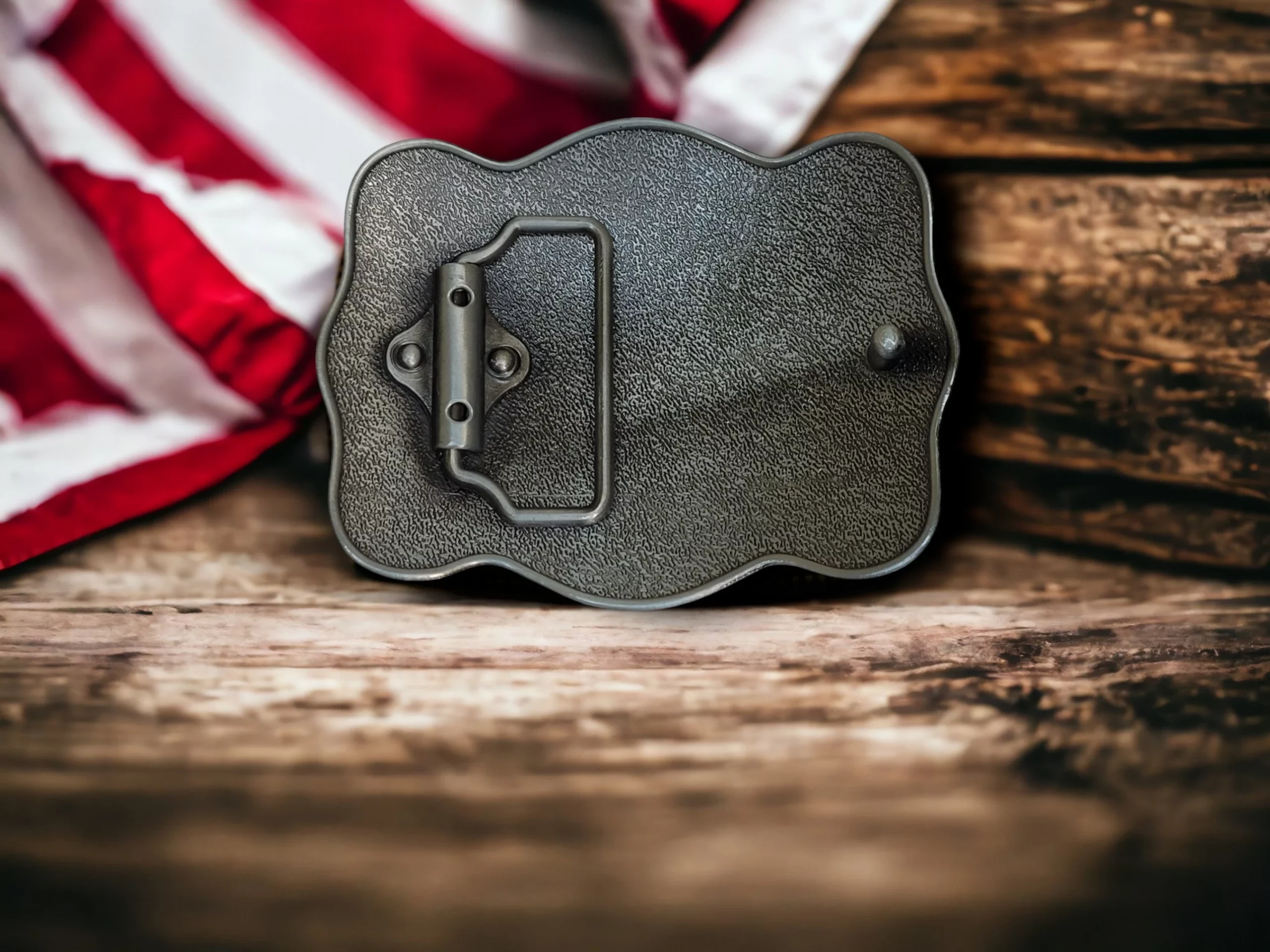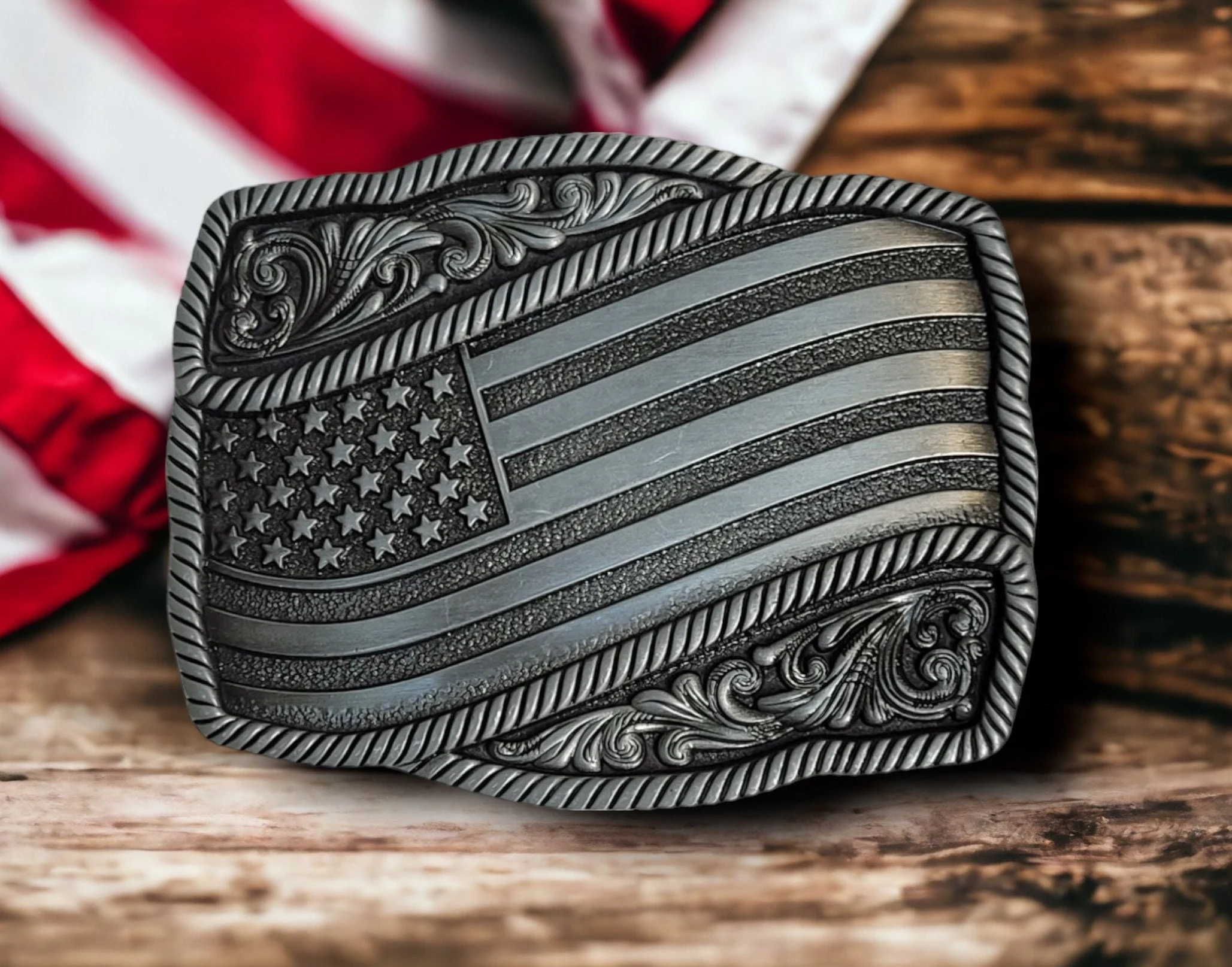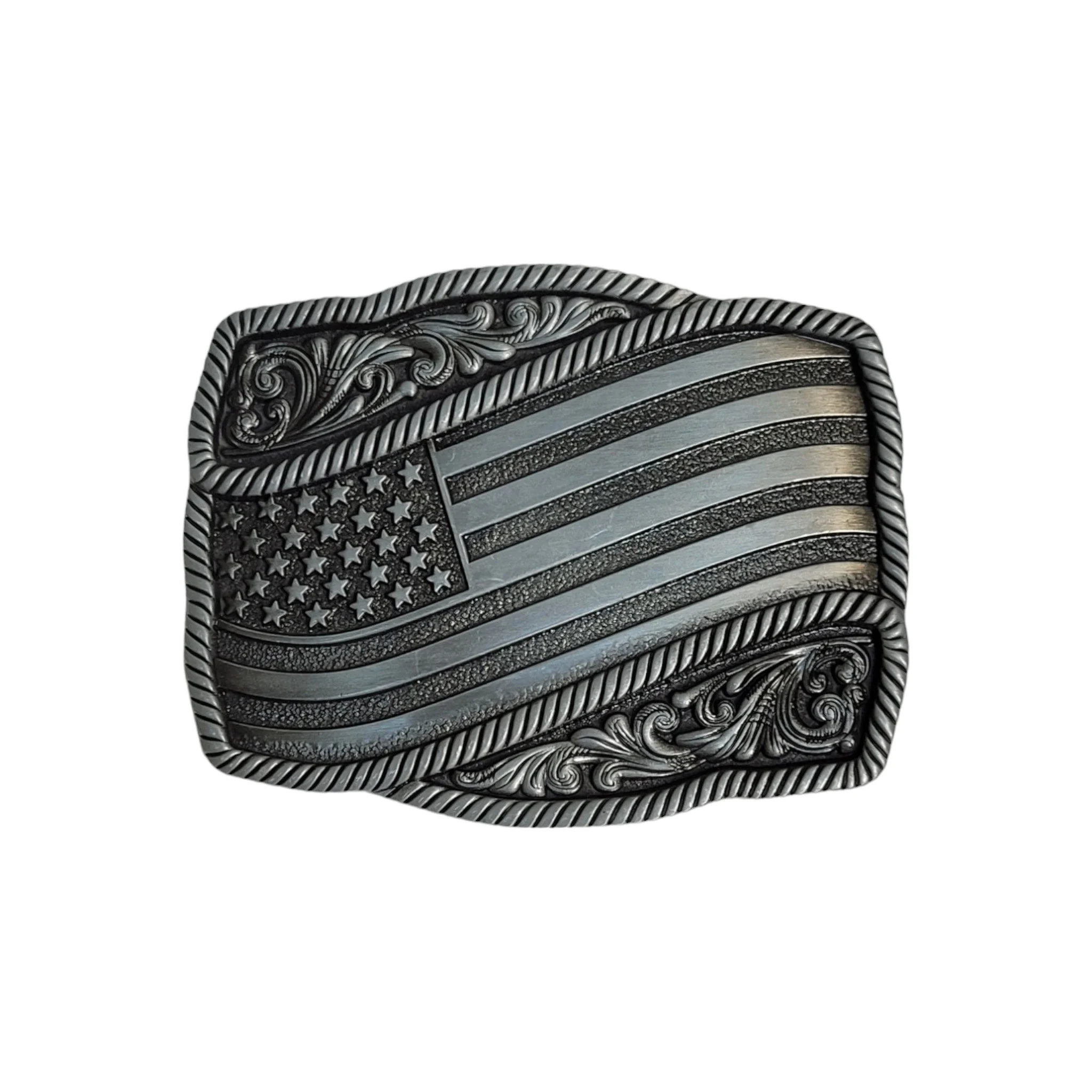 - Design: Antique Silver finish USA Flag.