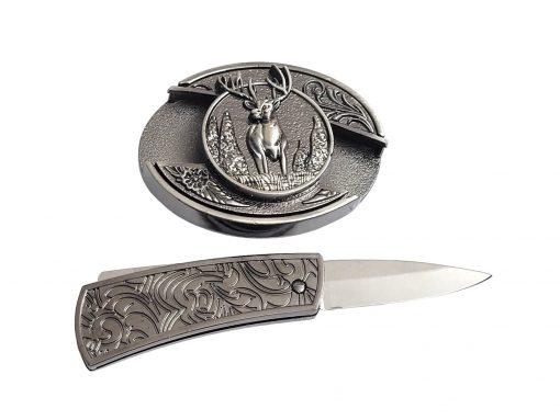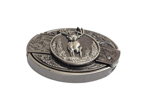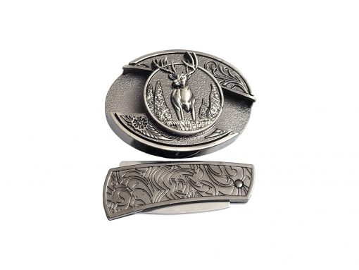 Introducing our Folding Knife Belt Buckle, featuring a striking Deer with Antlers design on a vintage silver finish. This unique buckle not only serves as a fashionable accessory but also houses a practical folding knife, making it an essential tool for outdoor enthusiasts. Plus, enjoy 🎉 free laser engraving 🎉 on the knife for a personalized touch!