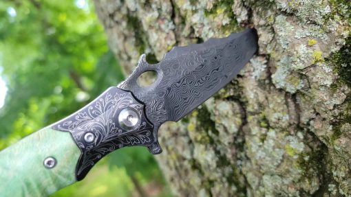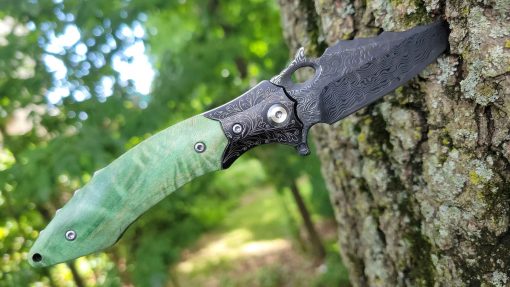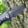 Hand Forged Titanium Layered Damascus Steel Folding Knife