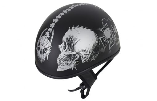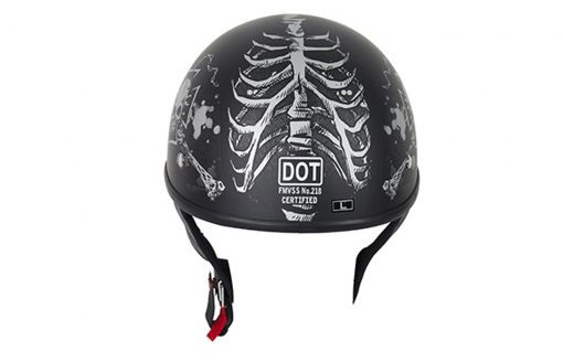 Flat Black DOT Helmet with Grey Horned Skeletons
