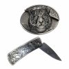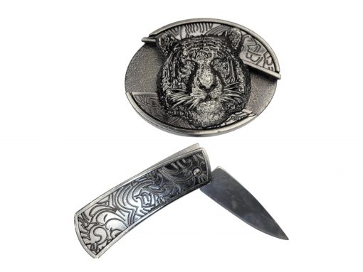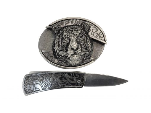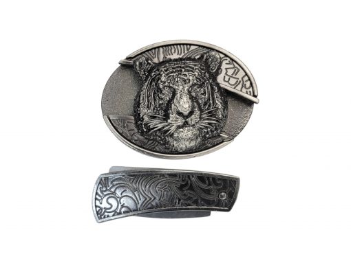 Introducing our Folding Knife Belt Buckle with a bold 3D Tiger Head design and a vintage silver finish. This belt buckle isn’t just stylish—it’s also functional, featuring a small folding knife for added convenience. Whether you’re out in nature or working around the barn, this buckle is the ideal blend of fashion and utility. Plus, take advantage of our special offer: 🎉 free laser engraving 🎉 on the knife!