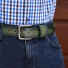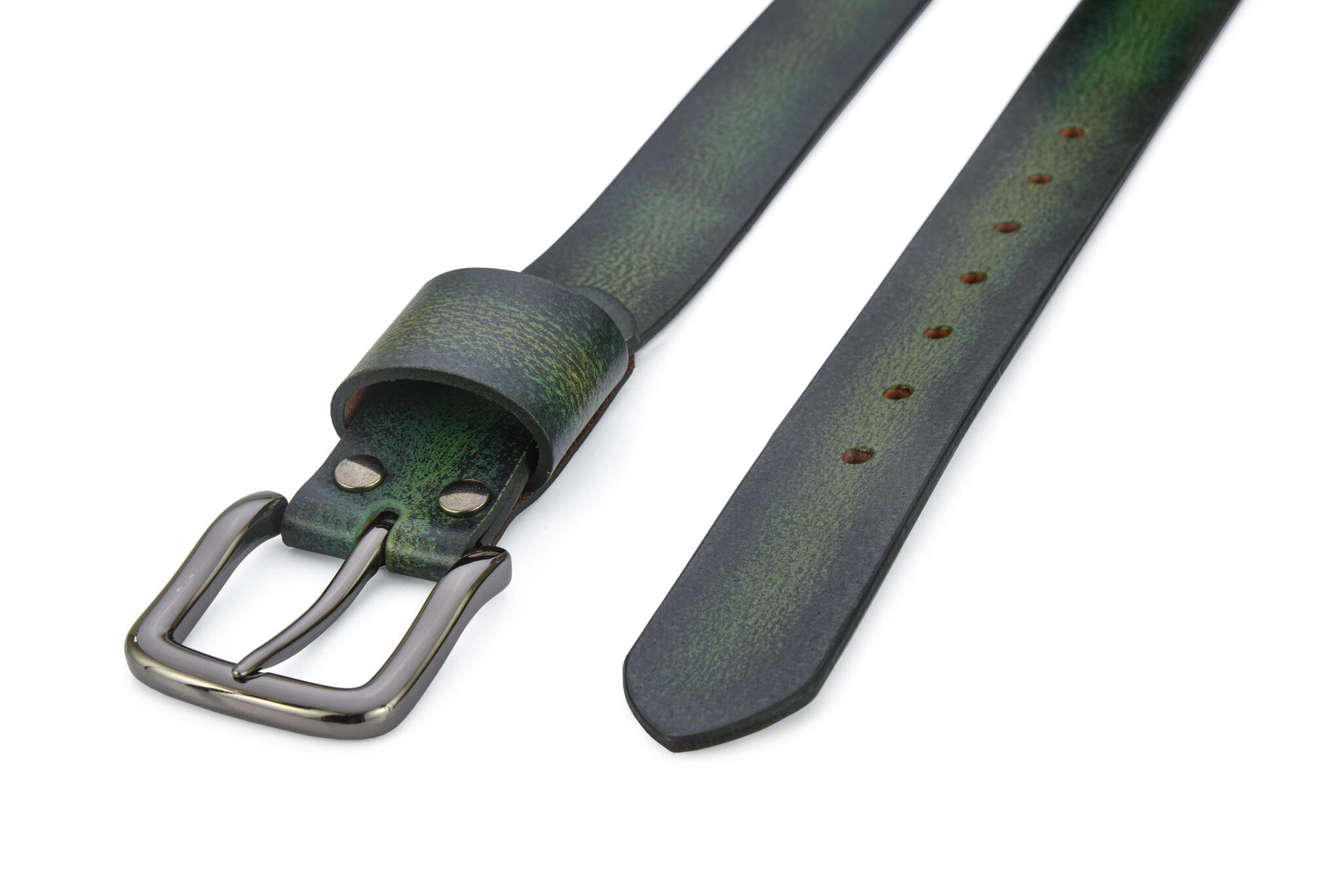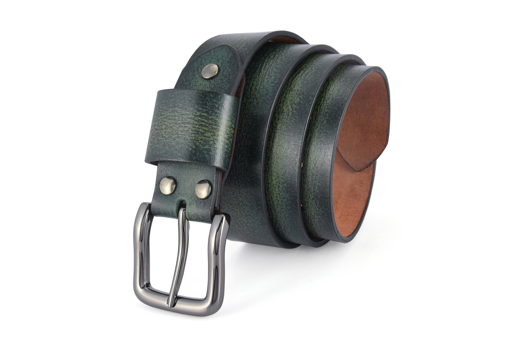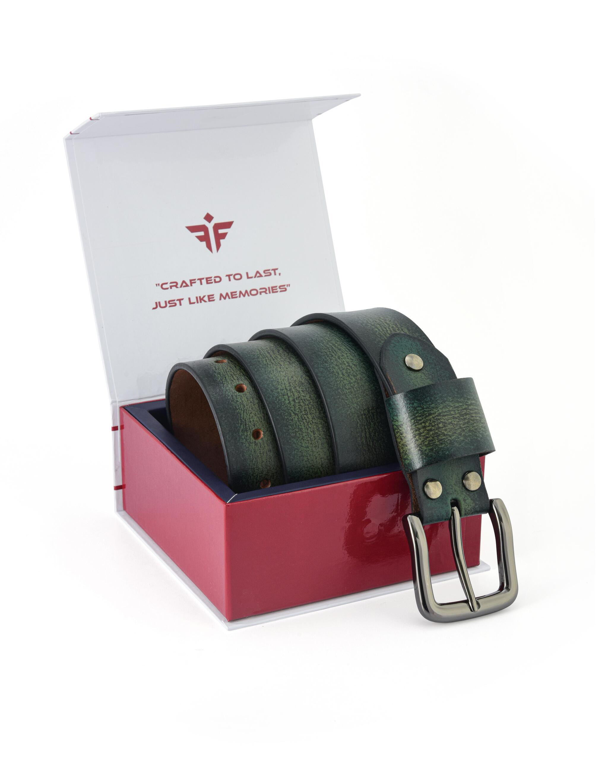 This forest green vintage leather belt is crafted from premium full-grain buffalo leather, offering durability and timeless style. Customize it with engraving for a personal touch.