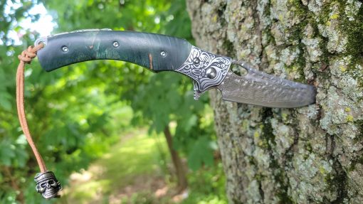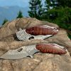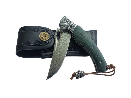 Experience the premium quality of our Handcrafted Forged Damascus Steel Folding Knife, built with an intricate deep-pickled blade, ergonomic Staypak handle, and reliable liner lock for superior performance in any setting.
