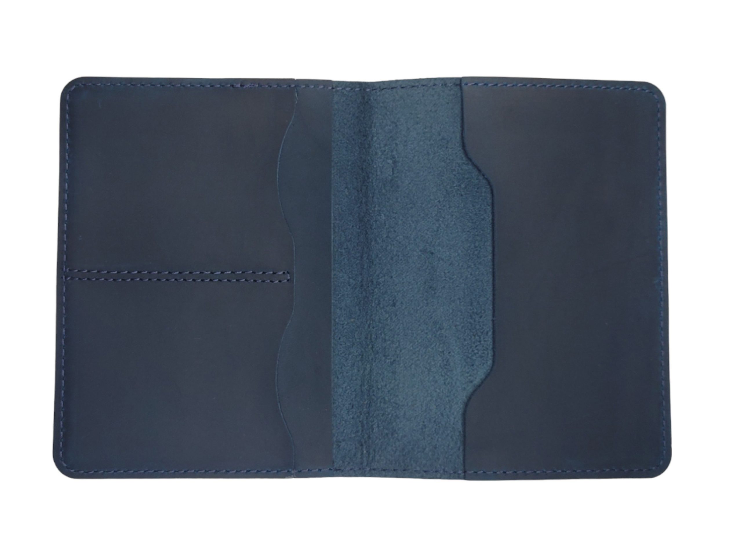 Handmade Blue Leather Passport Wallet – Customizable Travel Essential