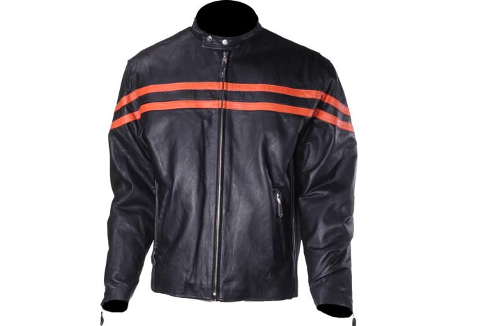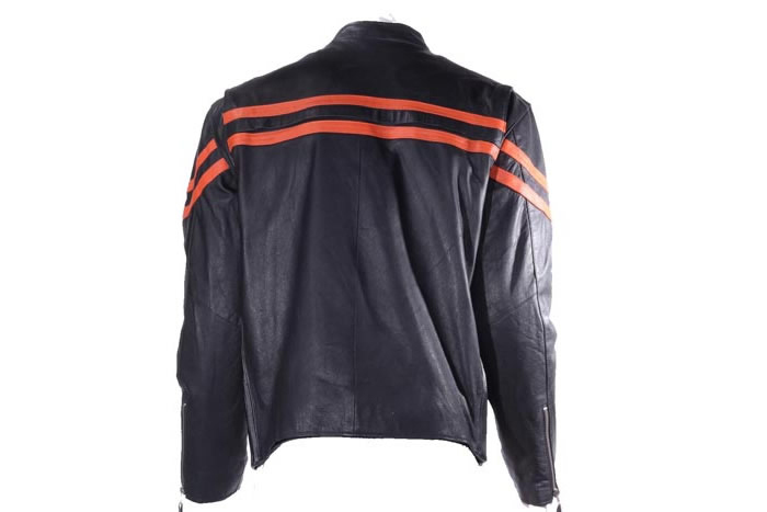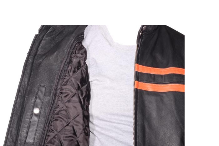 Men’s Leather Jacket With Orange Strips And Pockets