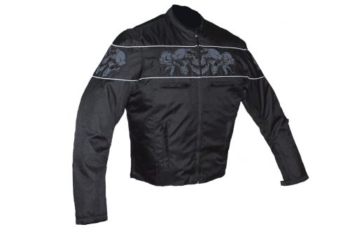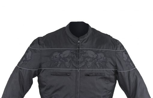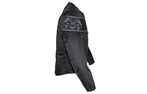 - Reflective skulls and reflective piping on chest, arms, and back