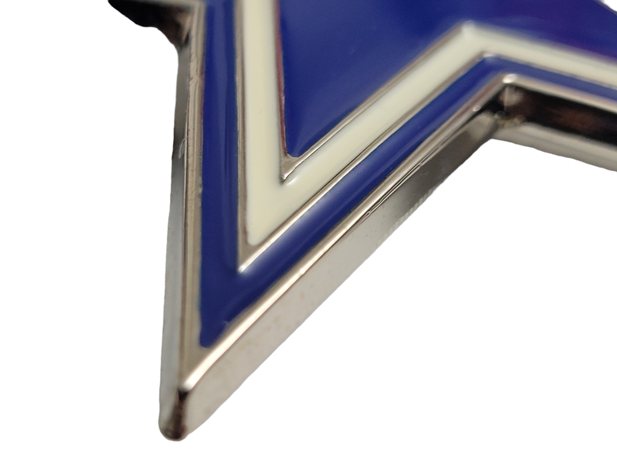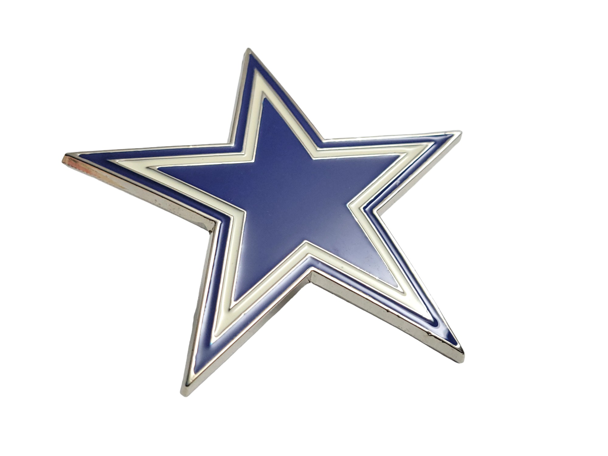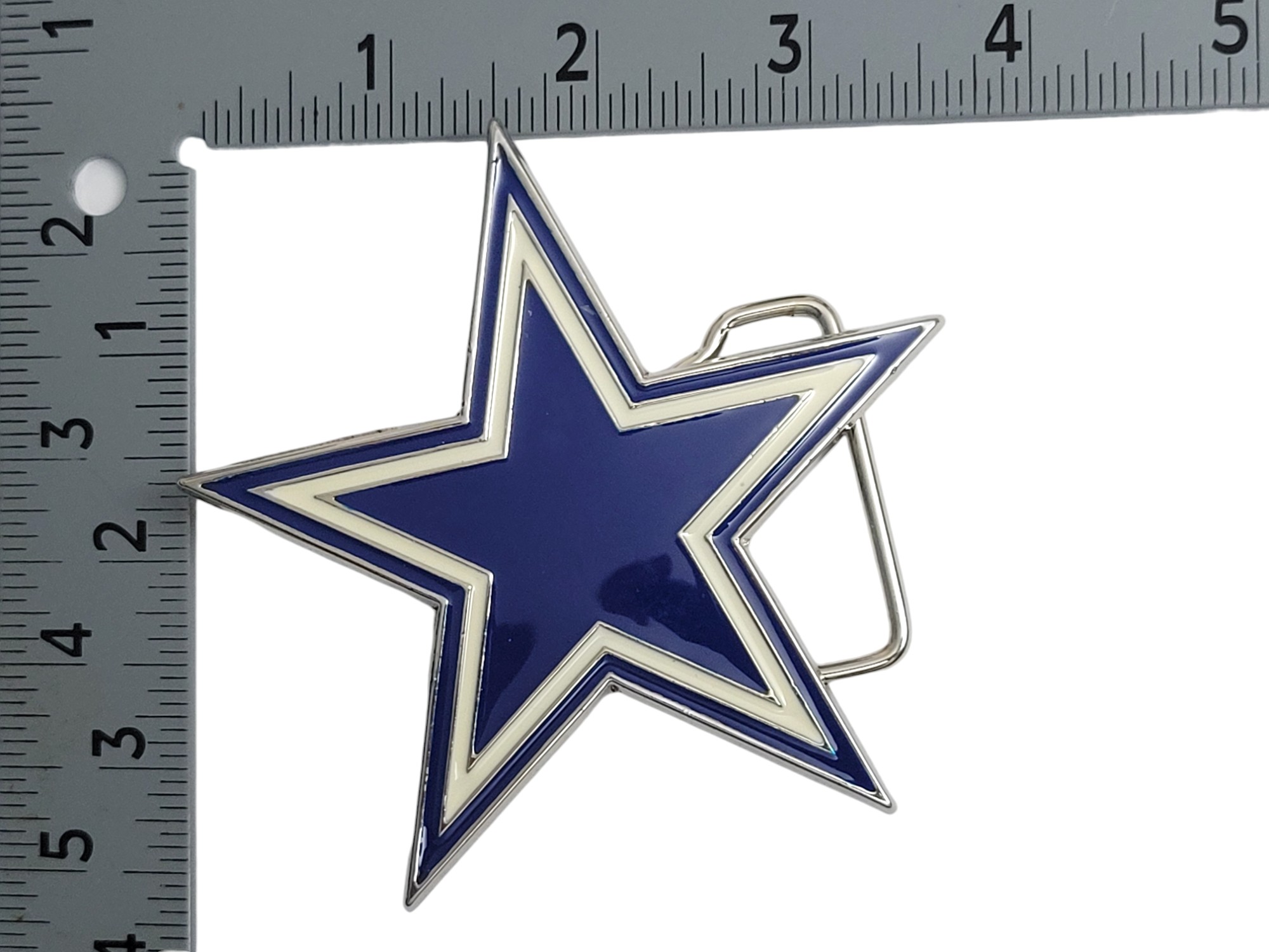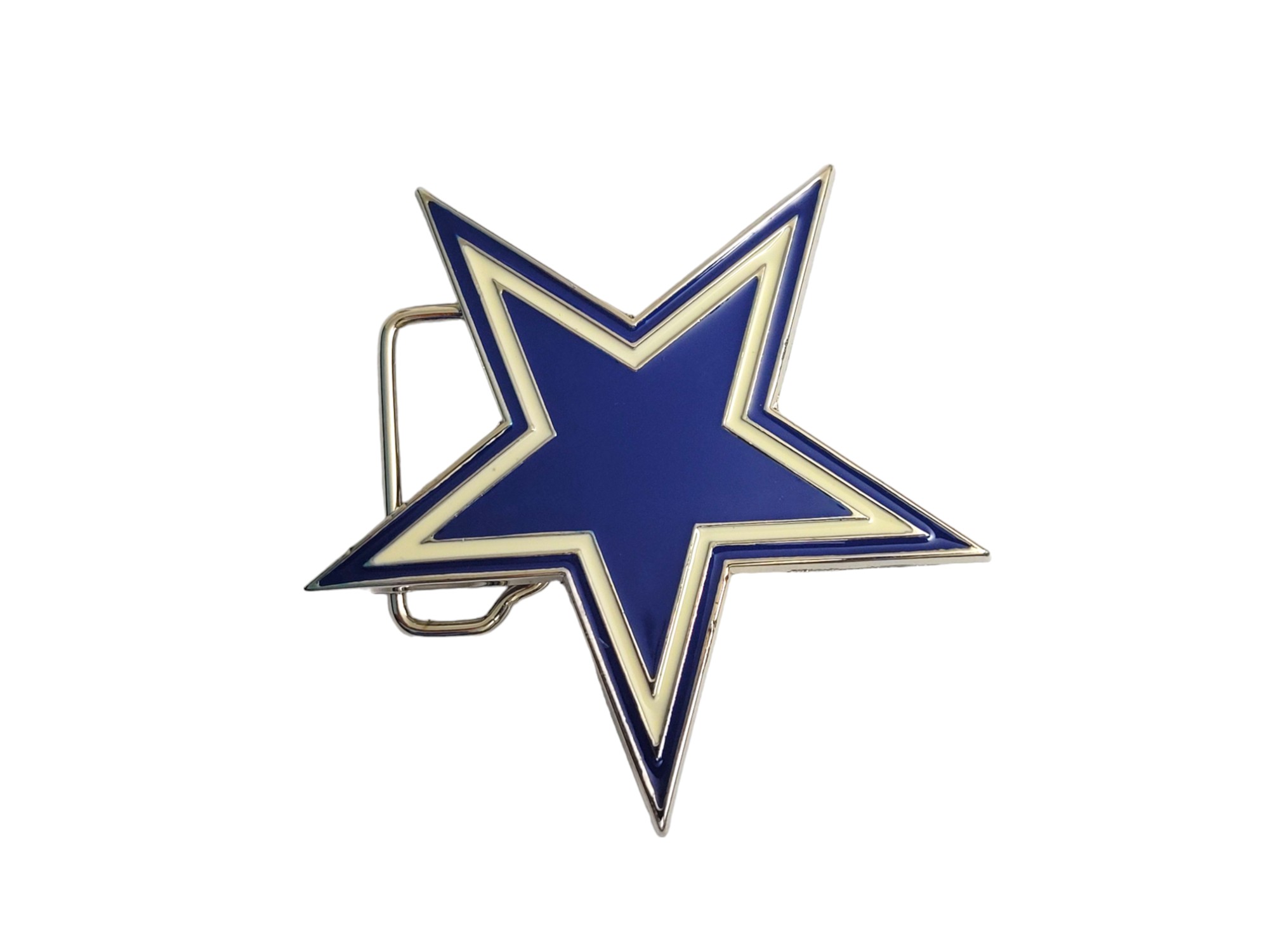 Make a striking statement with the North Blue Star Belt Buckle. Featuring an antique brushed silver finish and vibrant blue and white enamel inlay, this bold accessory brings personality and style to any outfit.