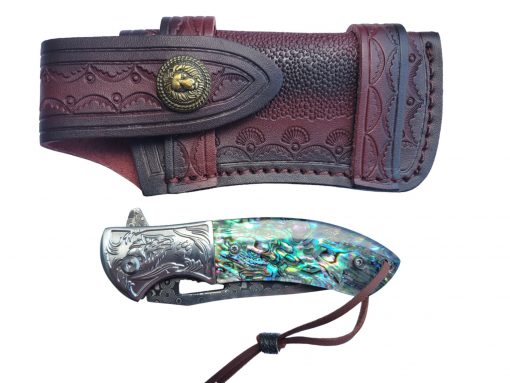 The unique Abalone shell handle, coated in protective resin, adds refinement while ensuring a secure grip. Over time, its pattern enhances in beauty and functionality.