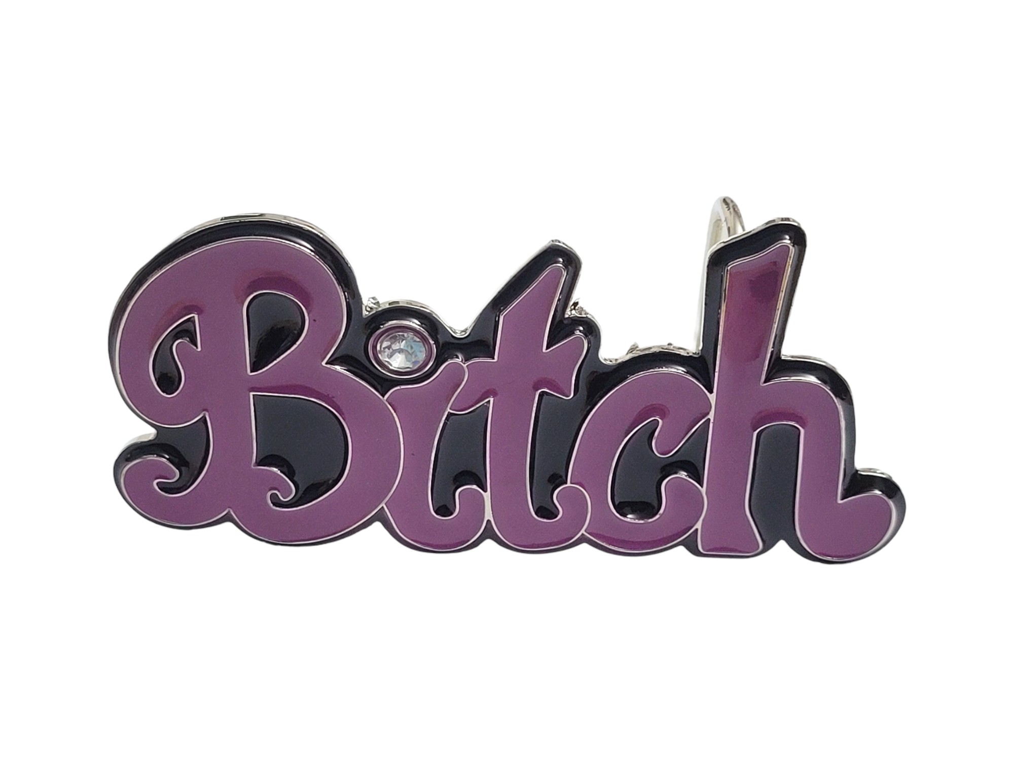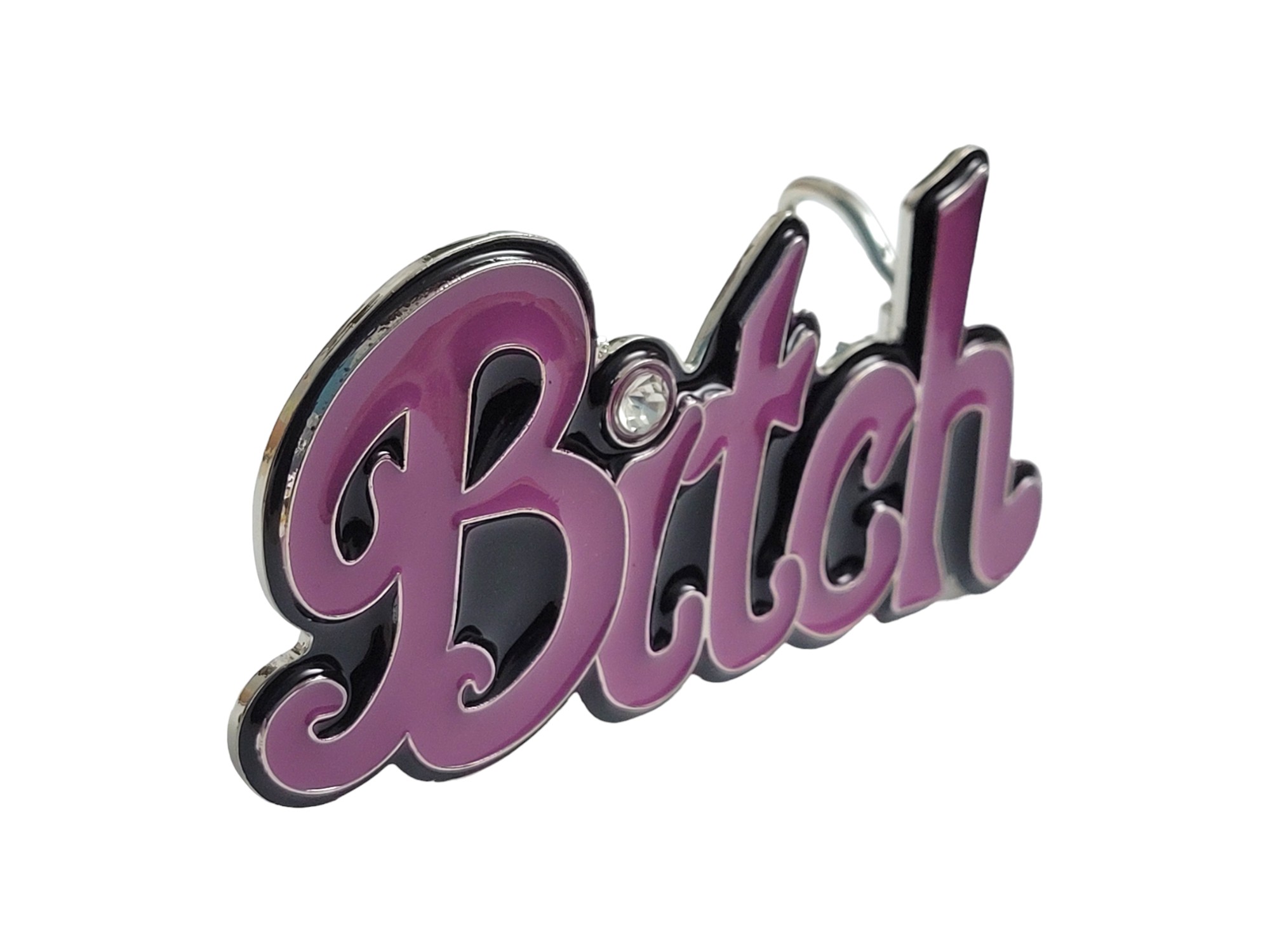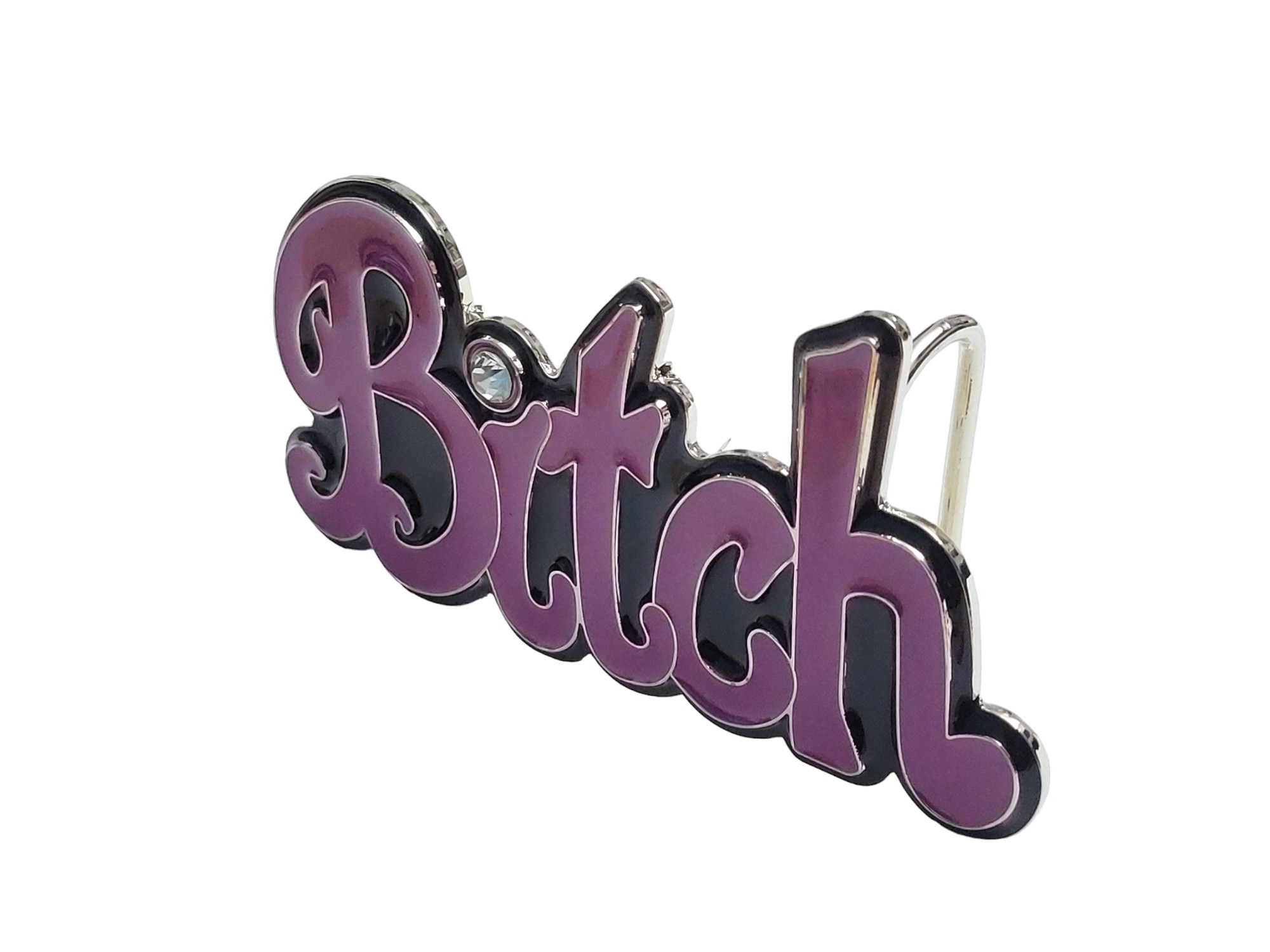 Purple Enamel B***h Belt Buckle With Rhinestone