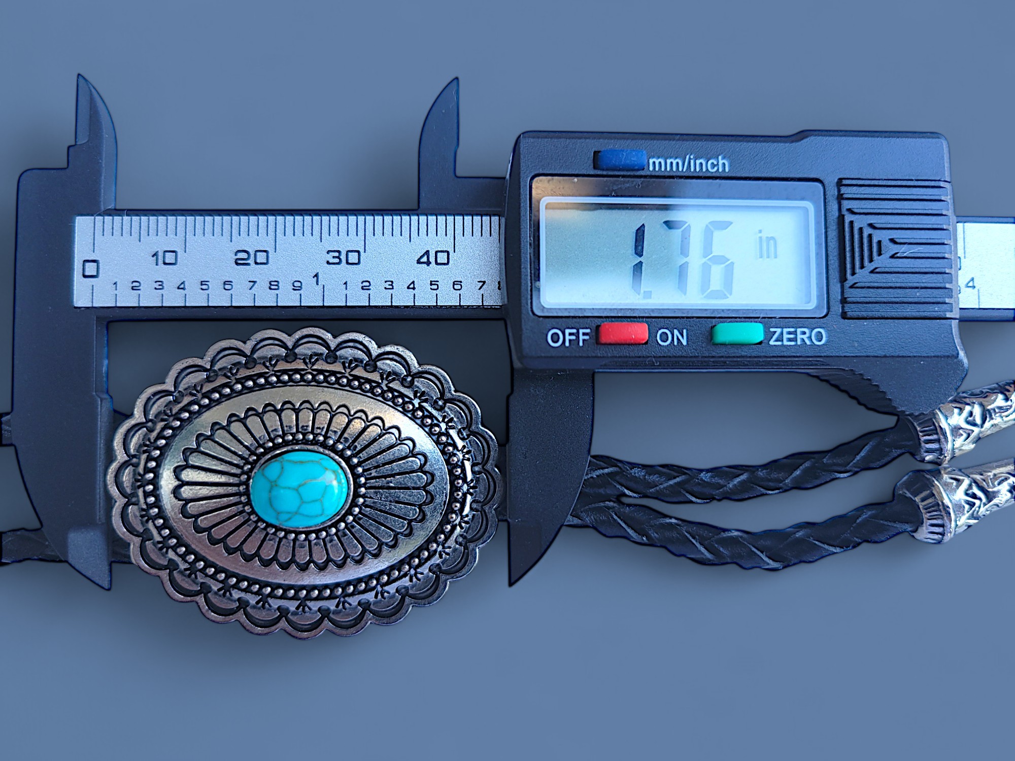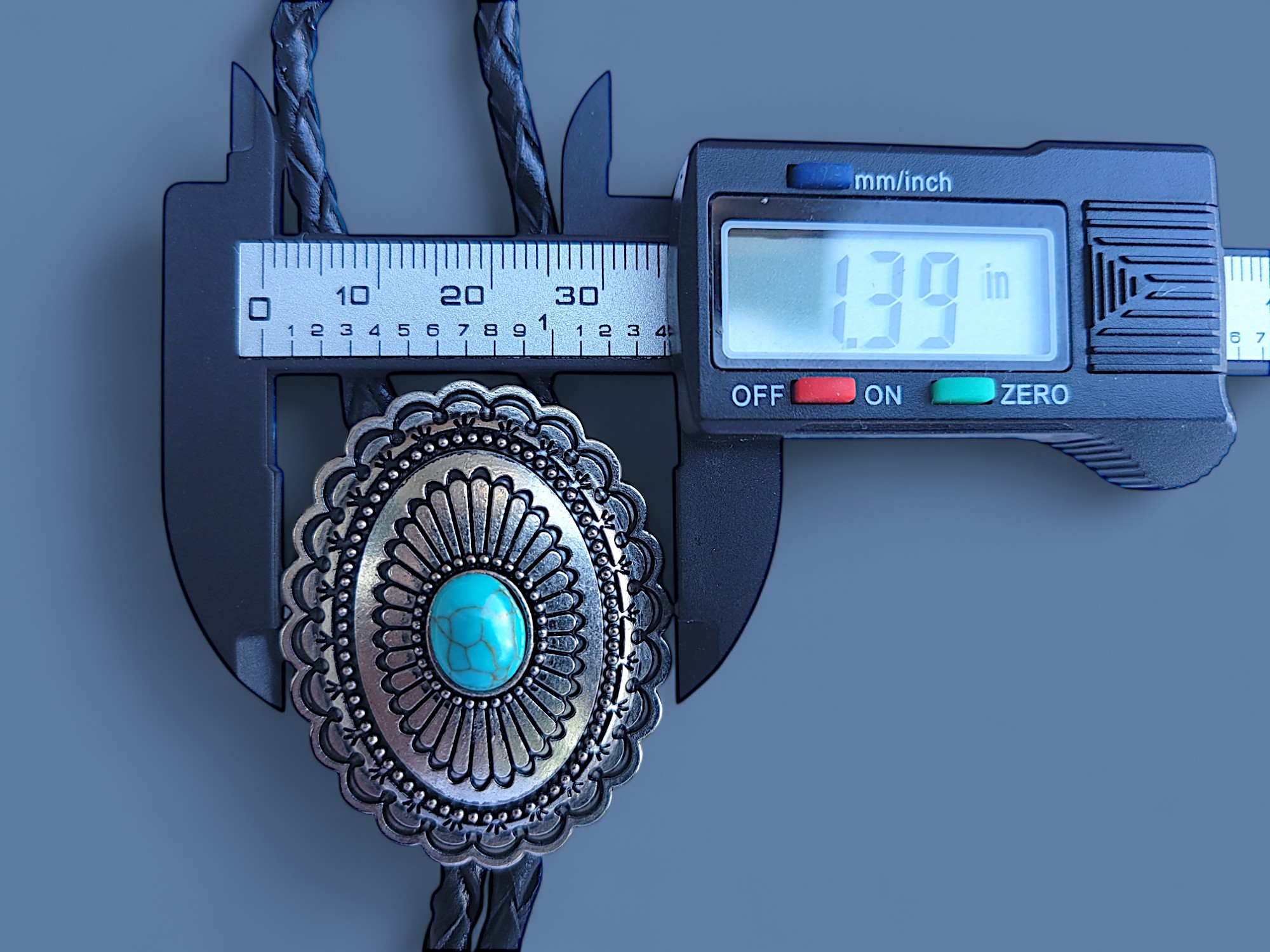 Southwestern Bolo Tie – Large Vintage Silver Pendant with Turquoise Center
