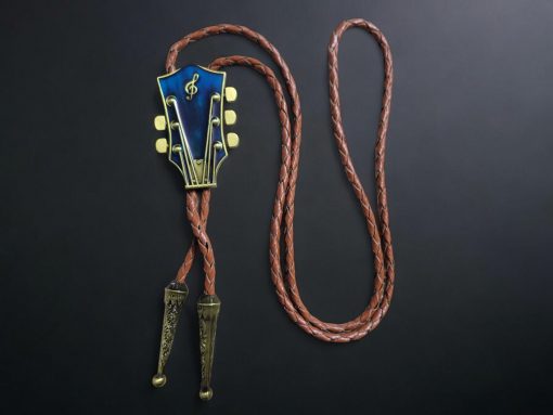 Show off your love for country music with this stylish guitar-shaped bolo tie, blending Western charm with musical passion.