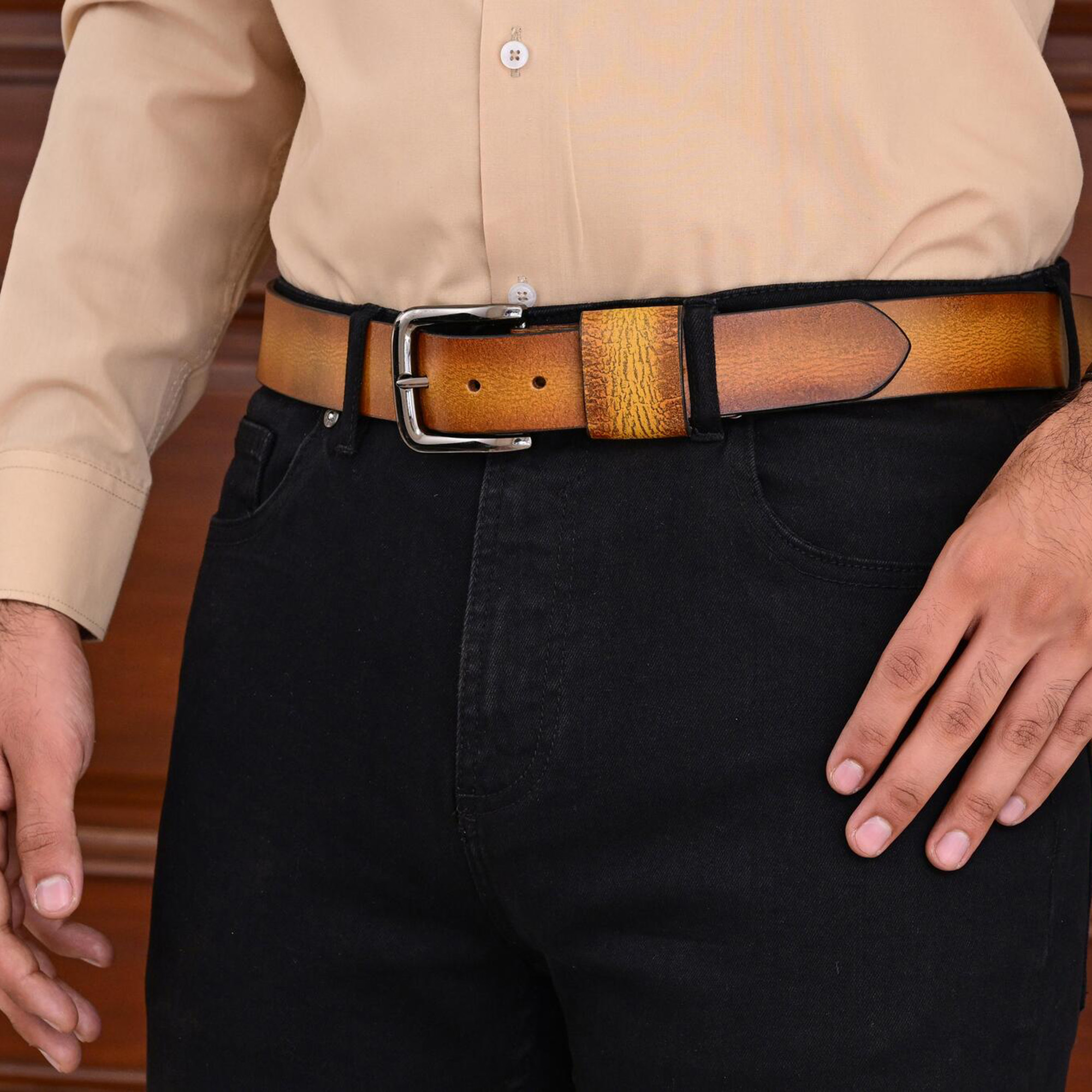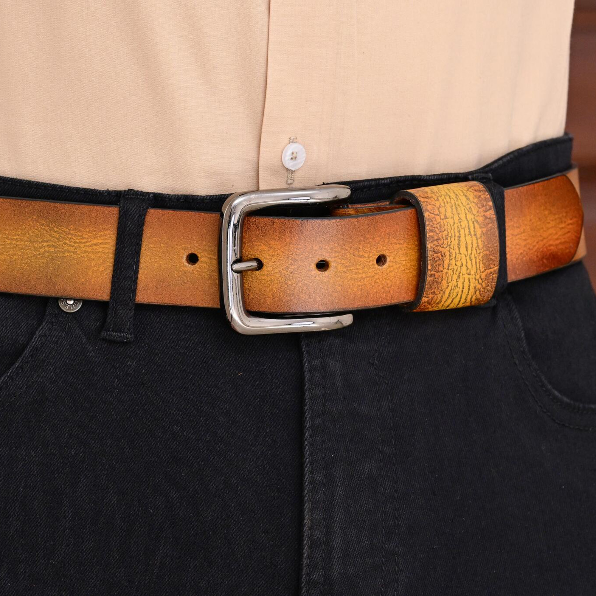 Unisex Burnt Gold Vintage Leather Belt – Timeless & Durable