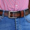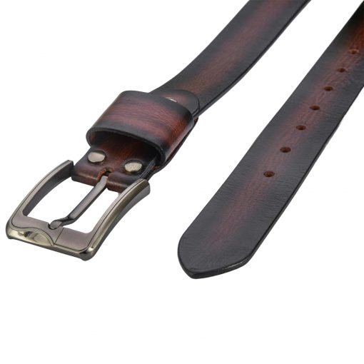 Unisex Burnt Maroon Oil Waxed Full Grain Vintage Leather Belt