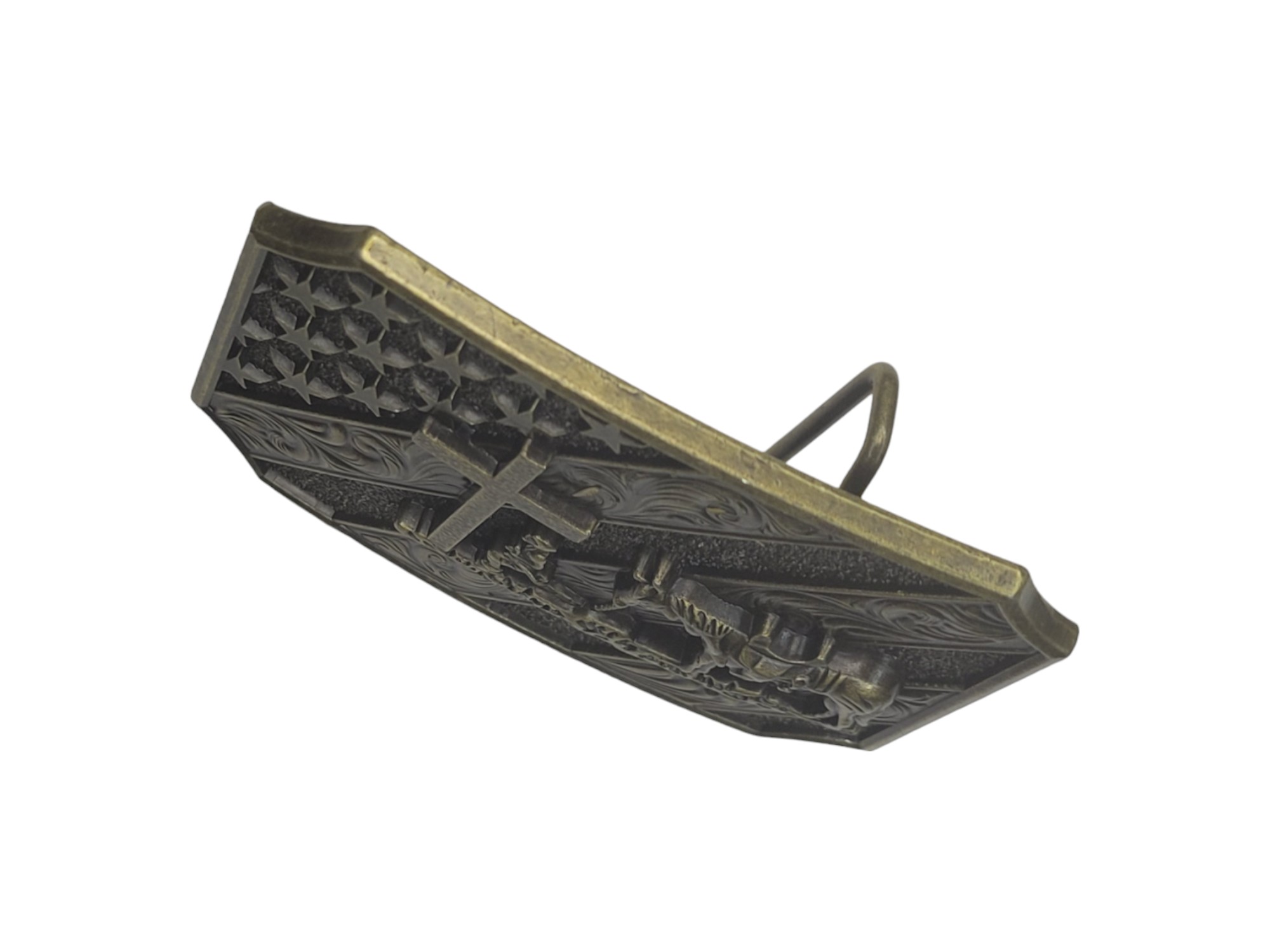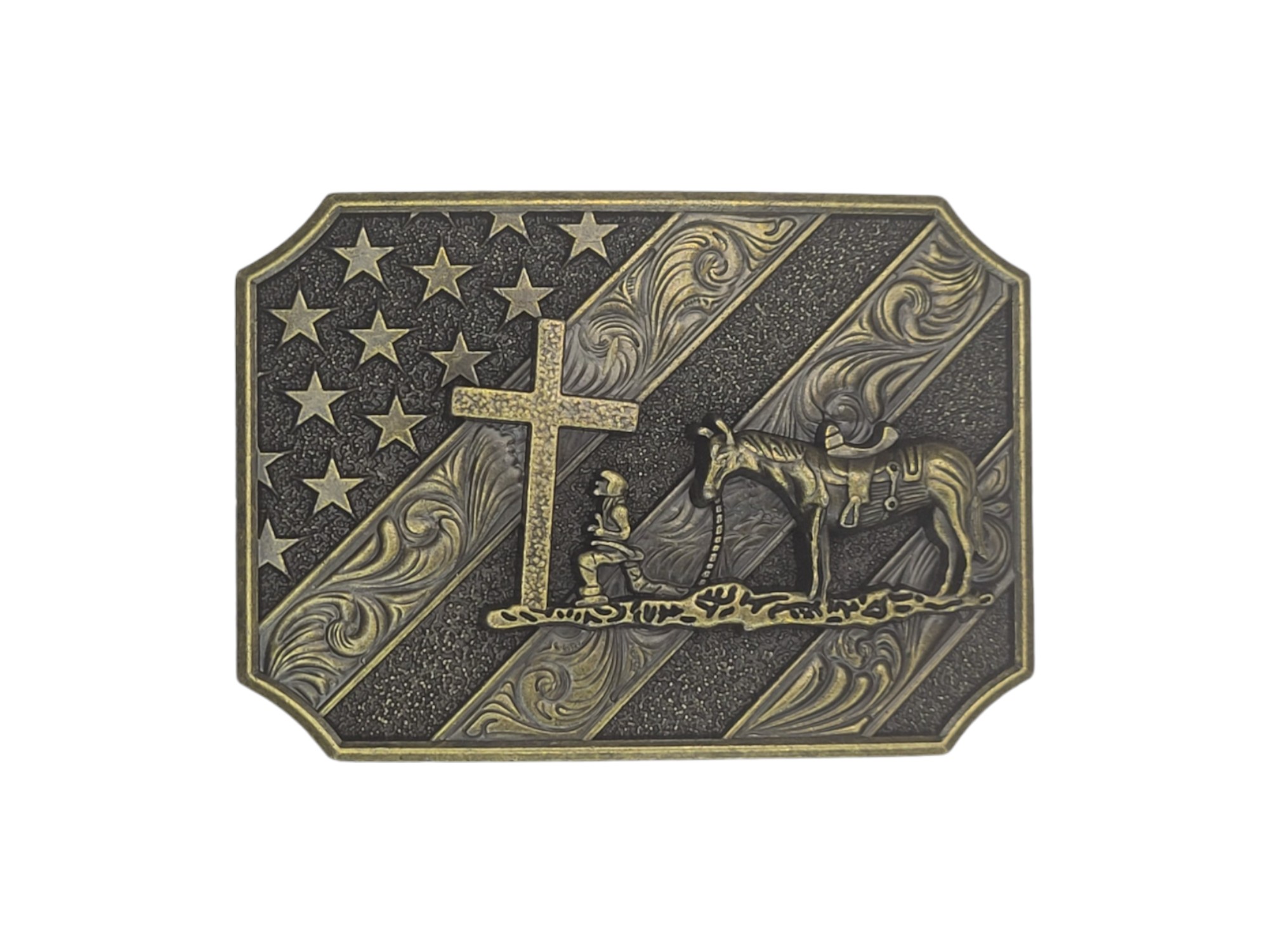 United States Flag Belt Buckle – Cowboy with Horse and Cross