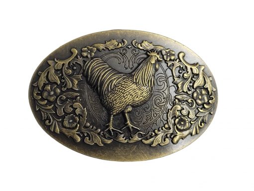 Vintage Bronze Plated Oval Shape 3D Rooster Western Belt Buckle