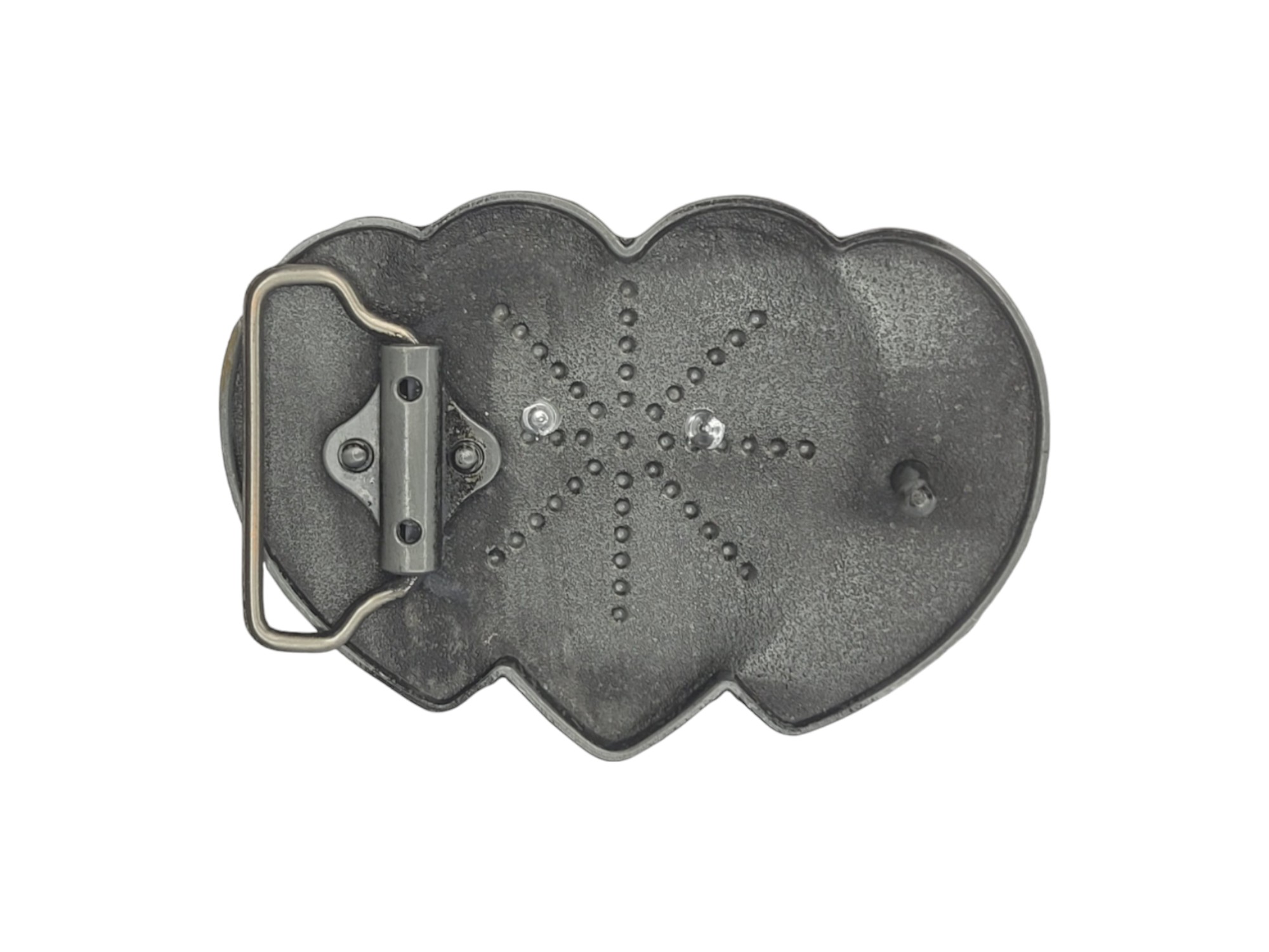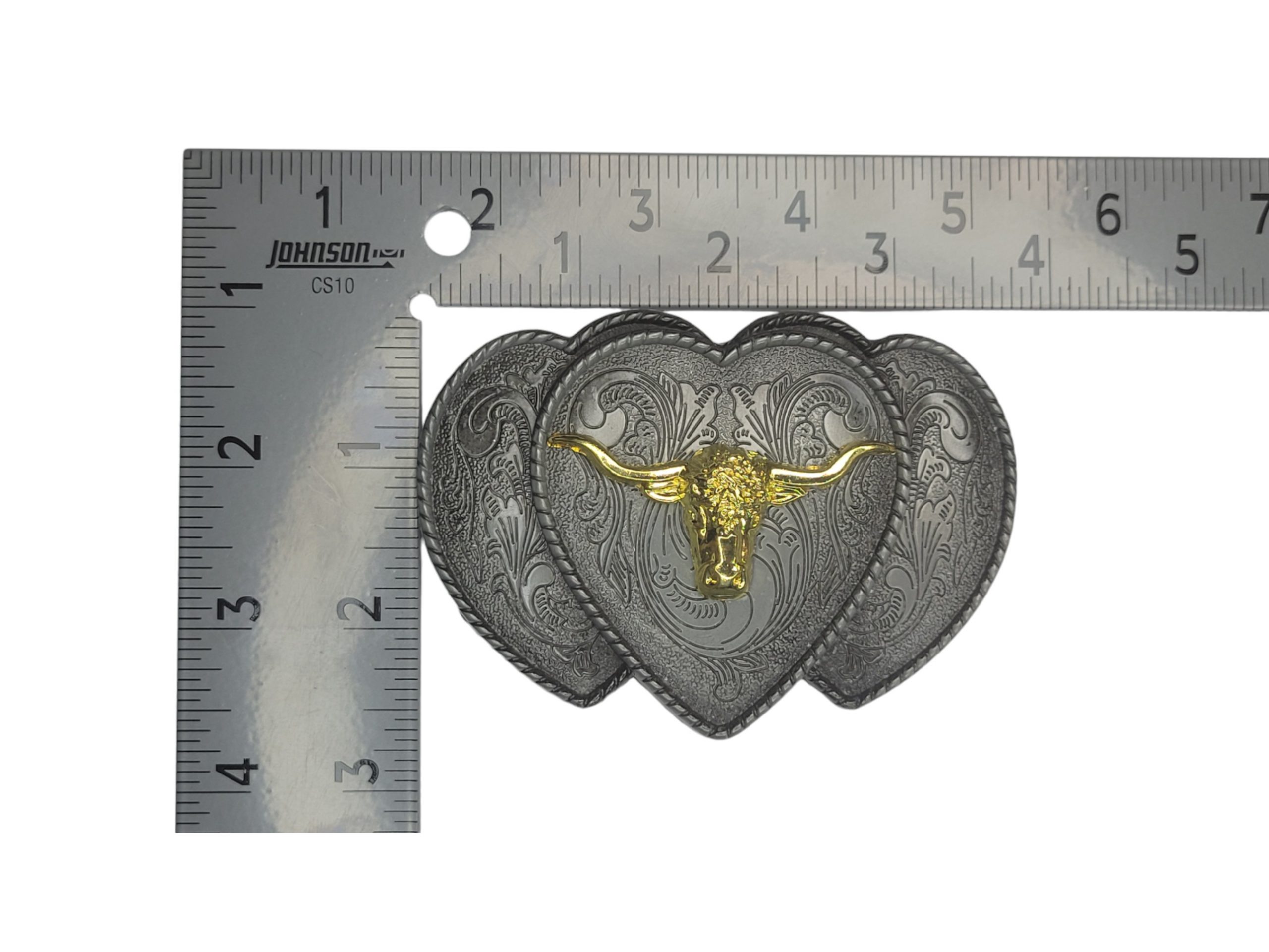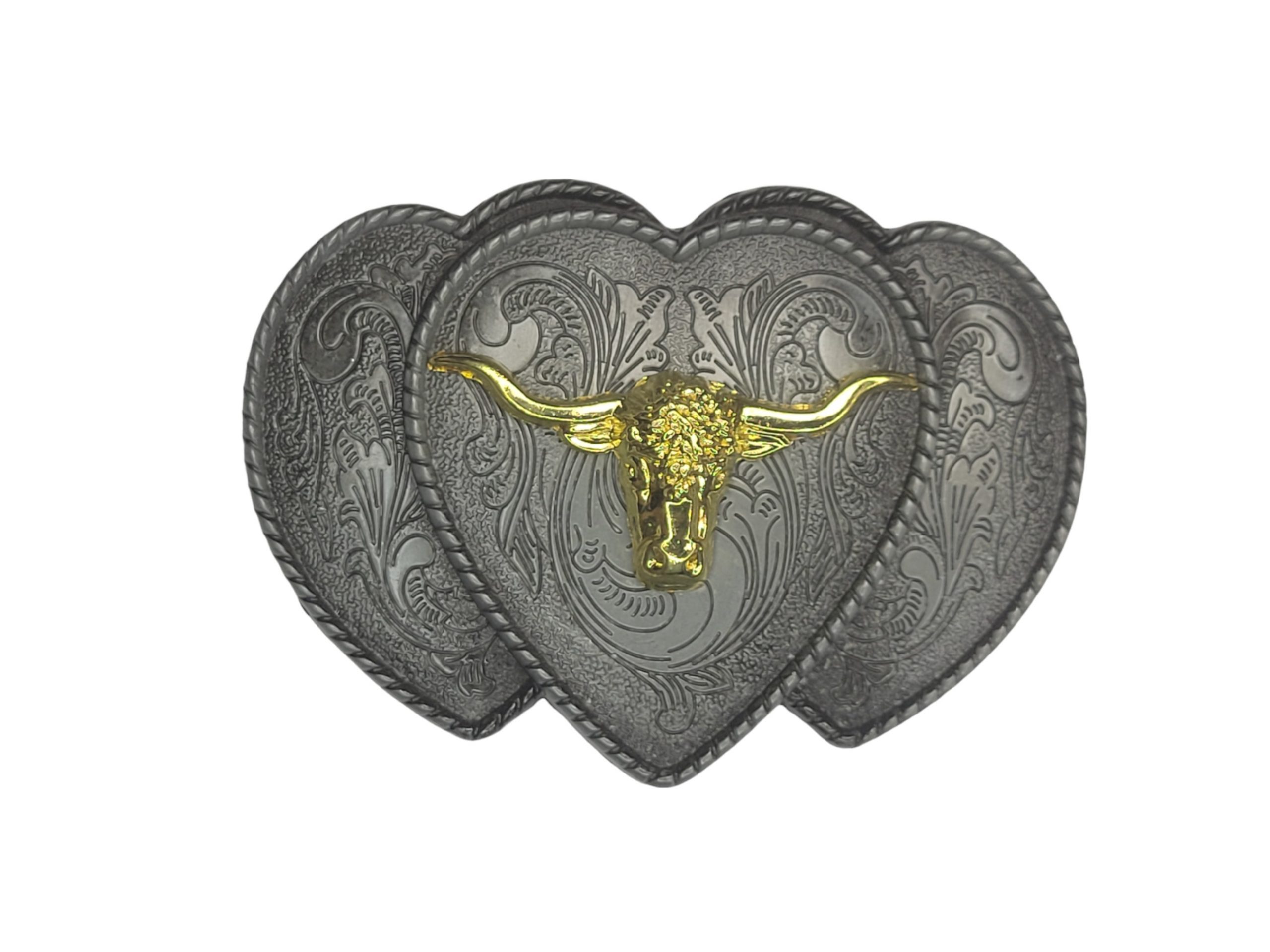 Vintage Silver Triple Heart Belt Buckle with Golden Longhorn