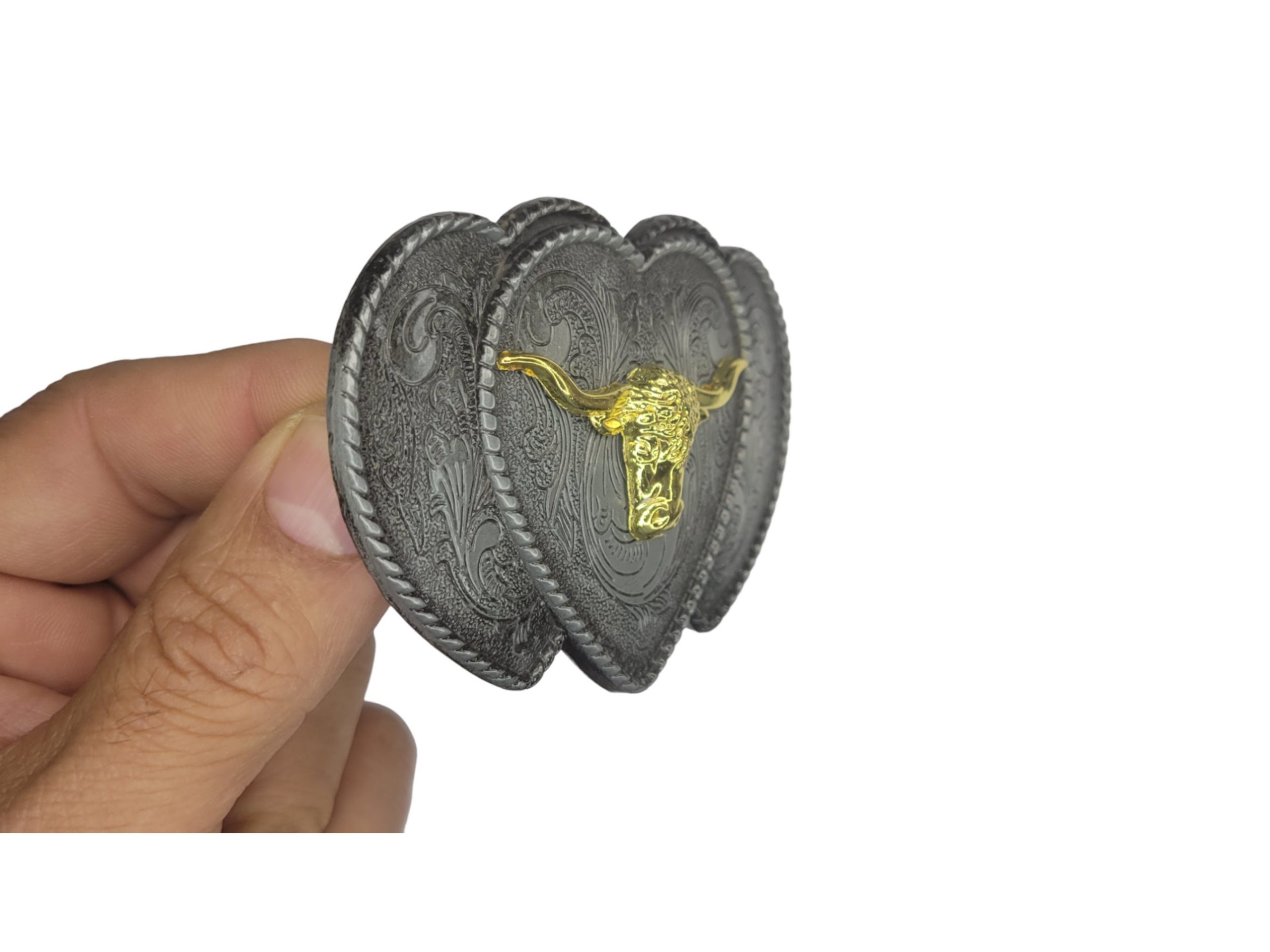 - Design: Features three elegant heart shapes, studded with a prominent golden longhorn in the center for a striking Western vibe.