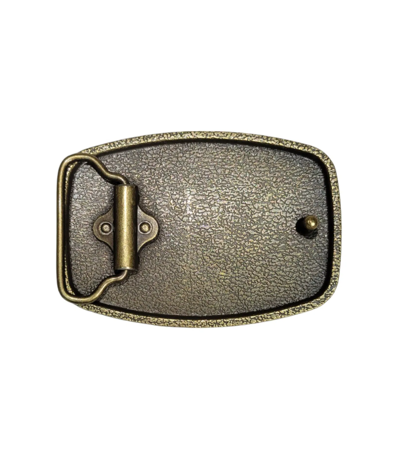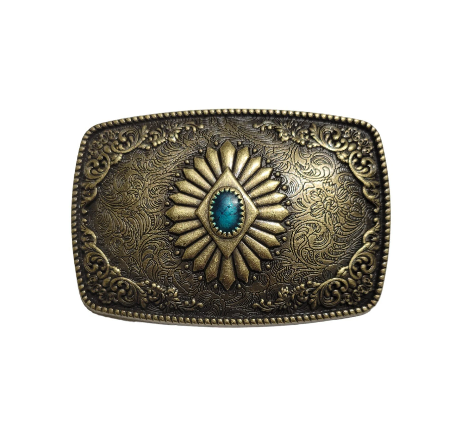 Add a distinctive touch to your belt with our Vintage Silver & Bronze Plated Southwest Enamel Totem Rectangle Belt Buckle. Featuring a stunning blue turquoise oval centerpiece and a timeless vintage brushed silver finish, this buckle is the perfect accessory to elevate your Western or rustic style.