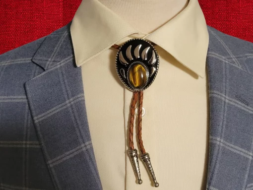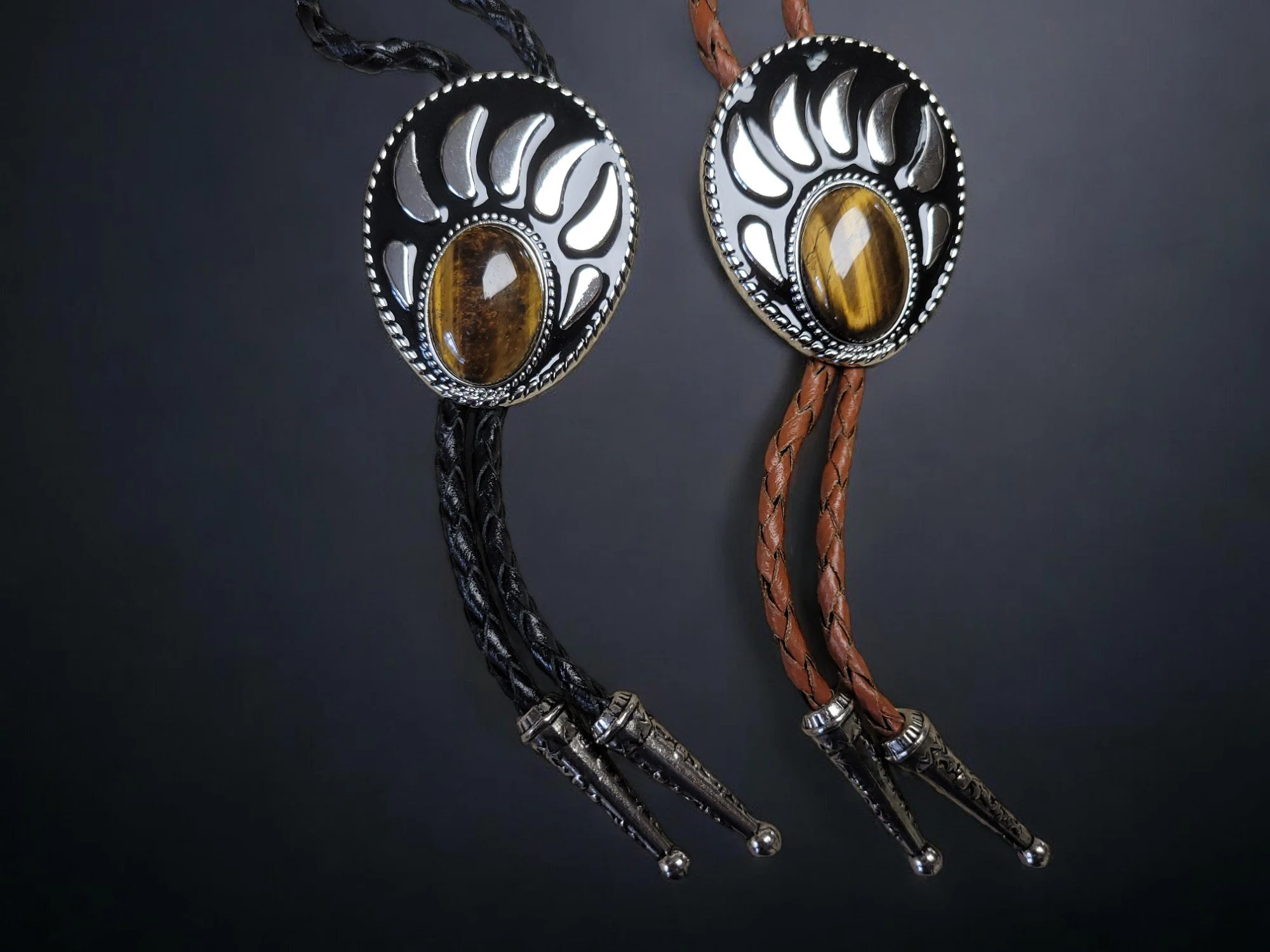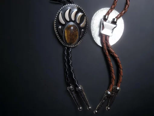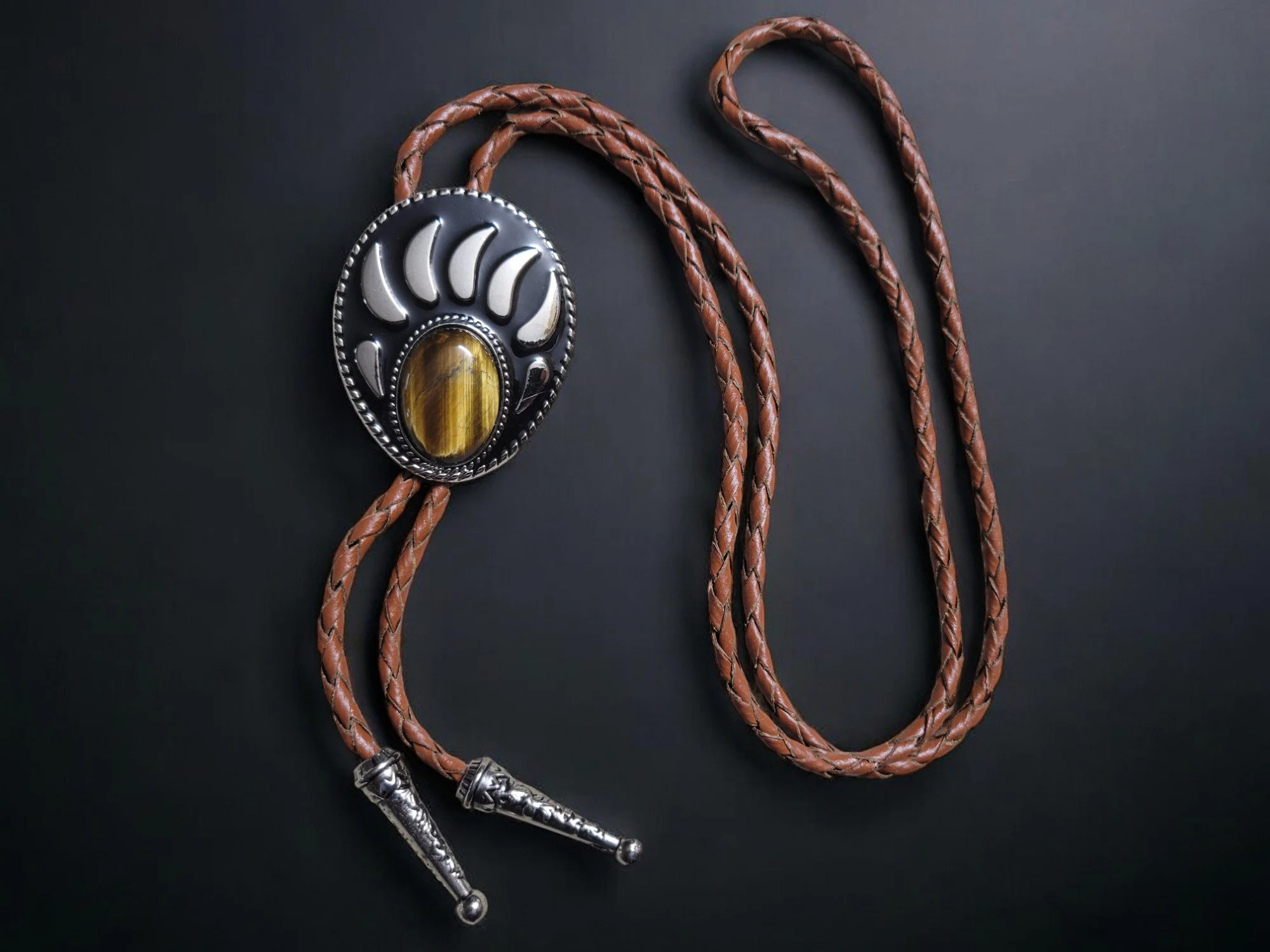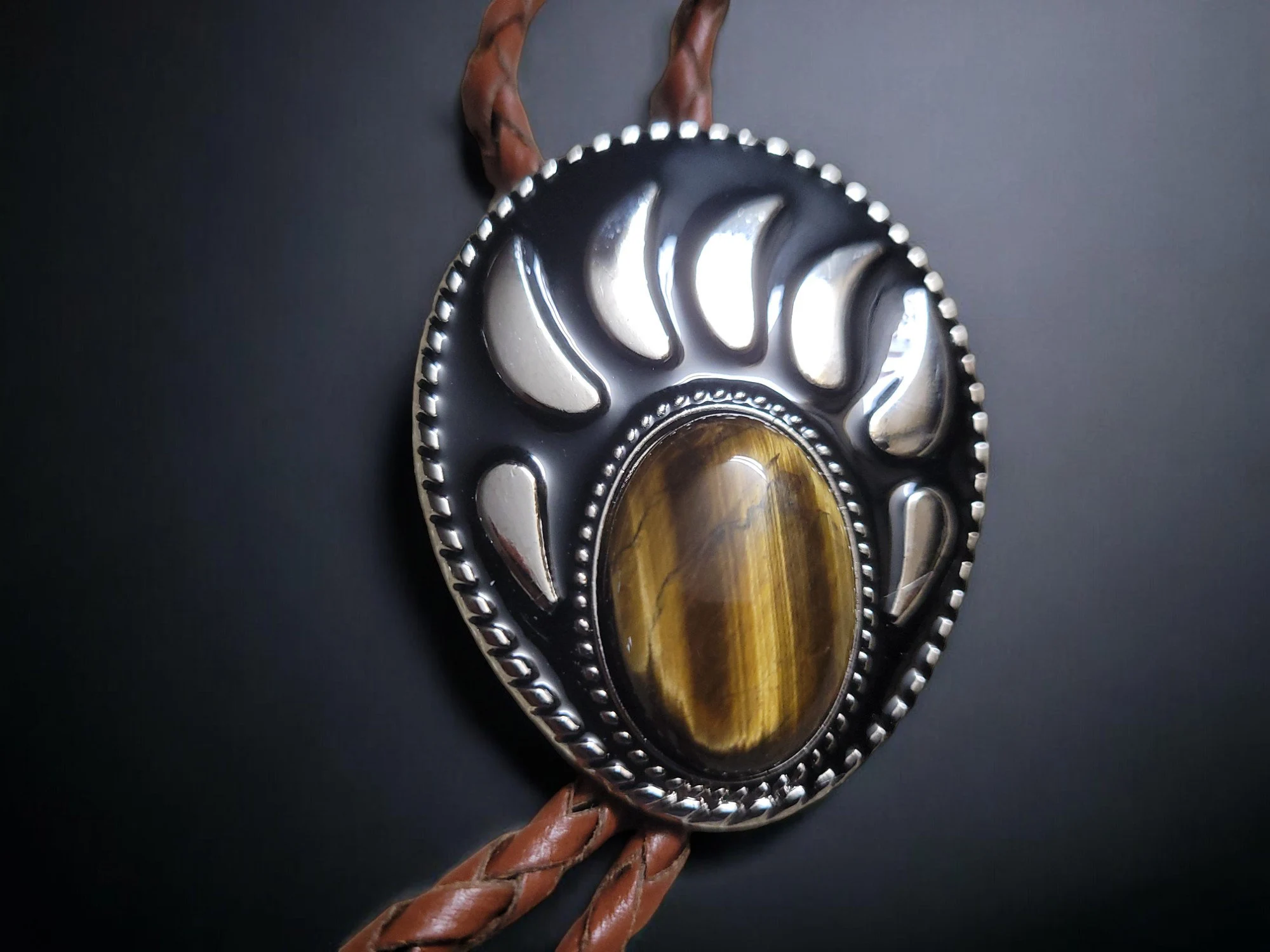 Original Western Style Bear Claw Bolo Tie with Tiger Eye Gem