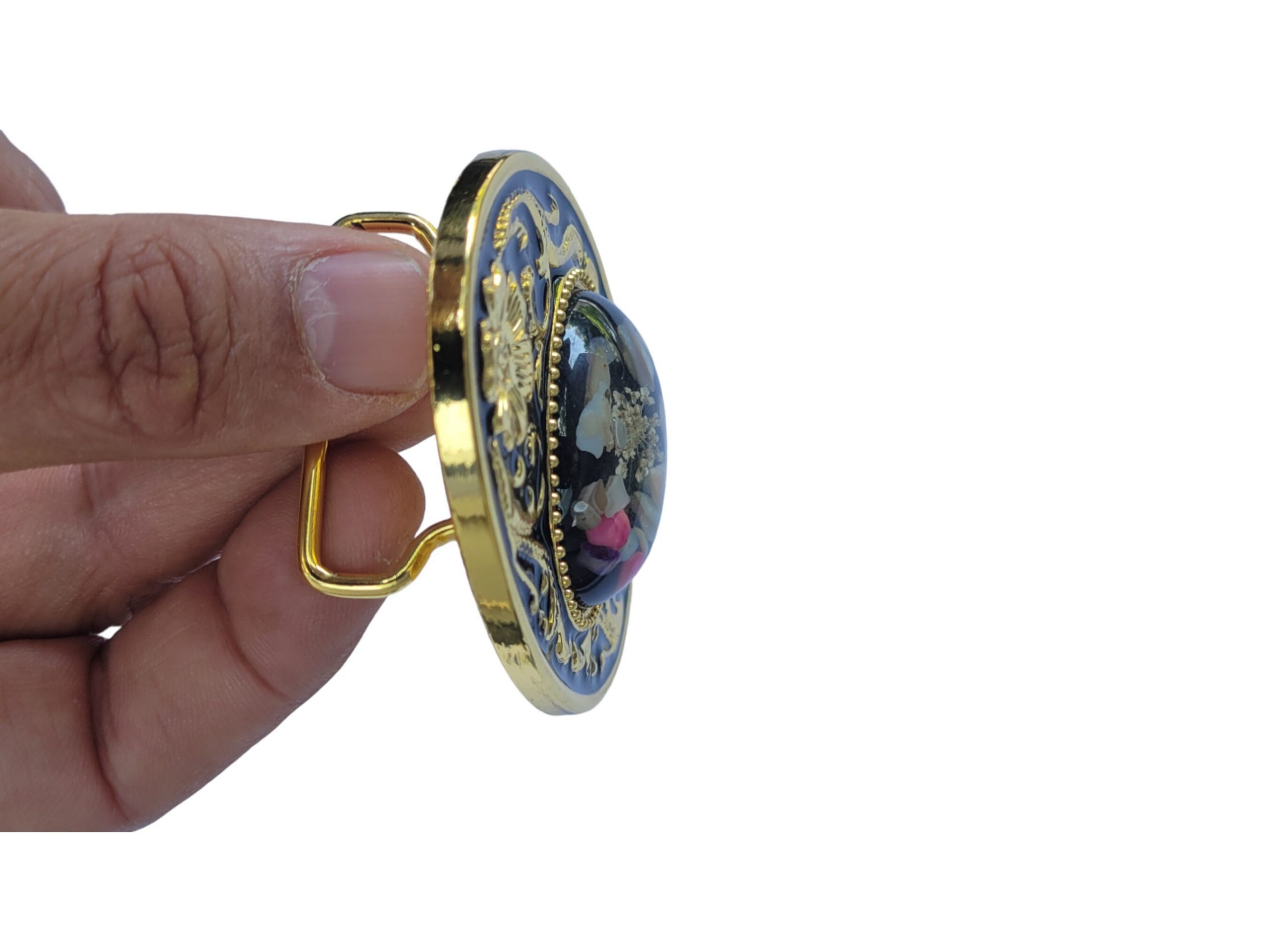 Crafted from high-quality metal alloy, this buckle is durable, fade-resistant, and polished for lasting shine. The resin-covered gemstone adds a distinctive touch while ensuring protection from wear and tear.