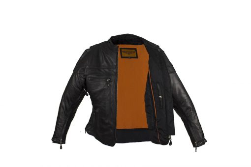 - Zippered cuffs with leather pull tabs and button snaps