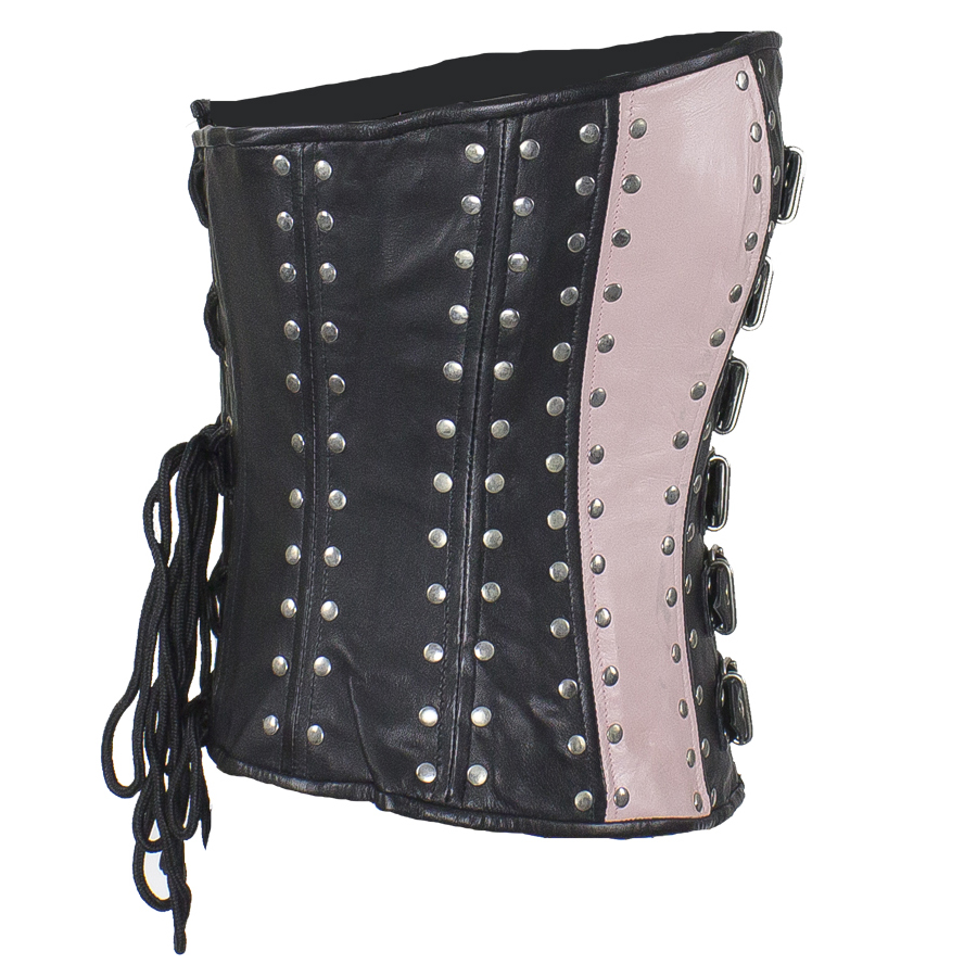 - Dual vertical rows of ΒΌ” brushed metal studs all around